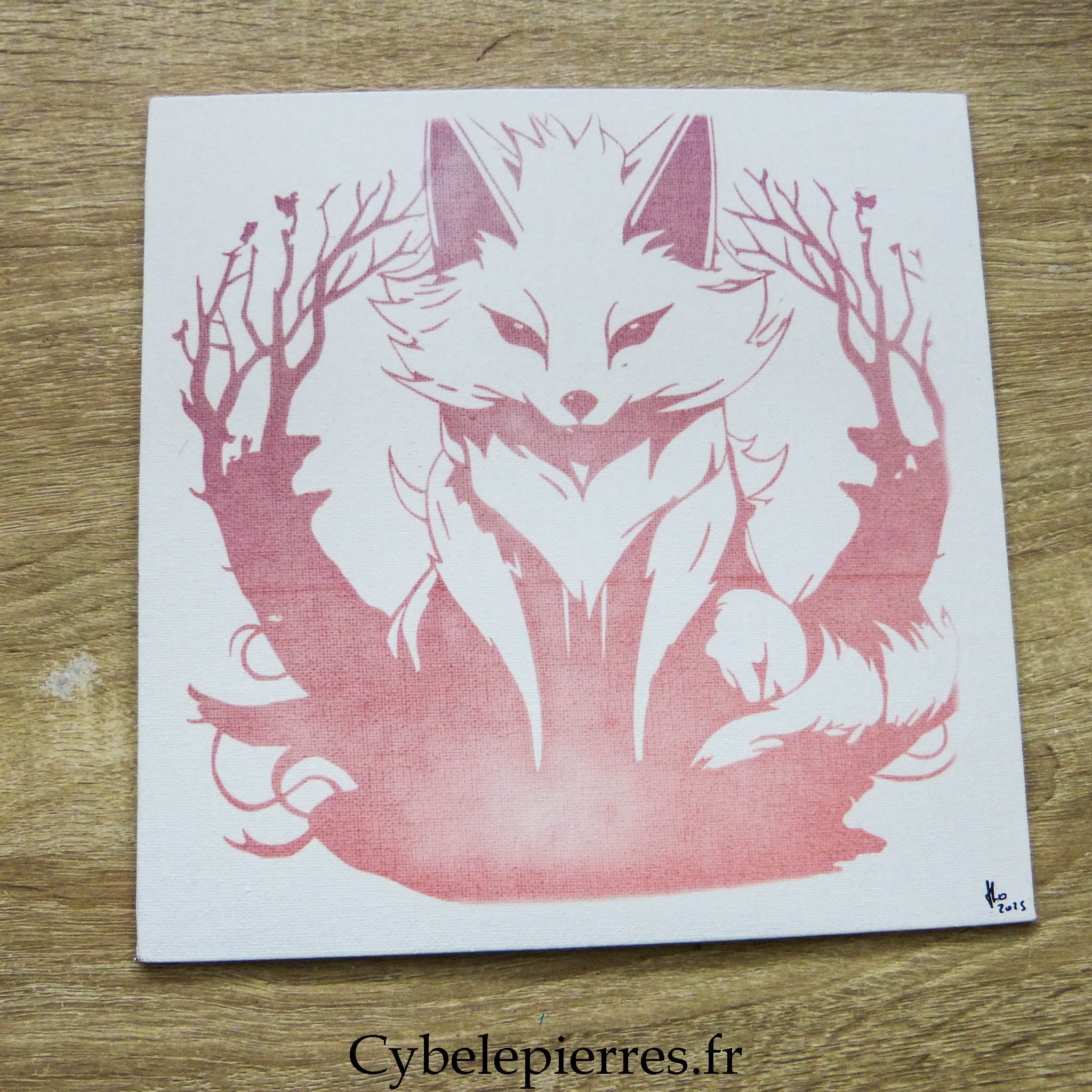 Tableau décoratif réalisé en infusible ink sur toile de coton blanc, format 25×25 cm.