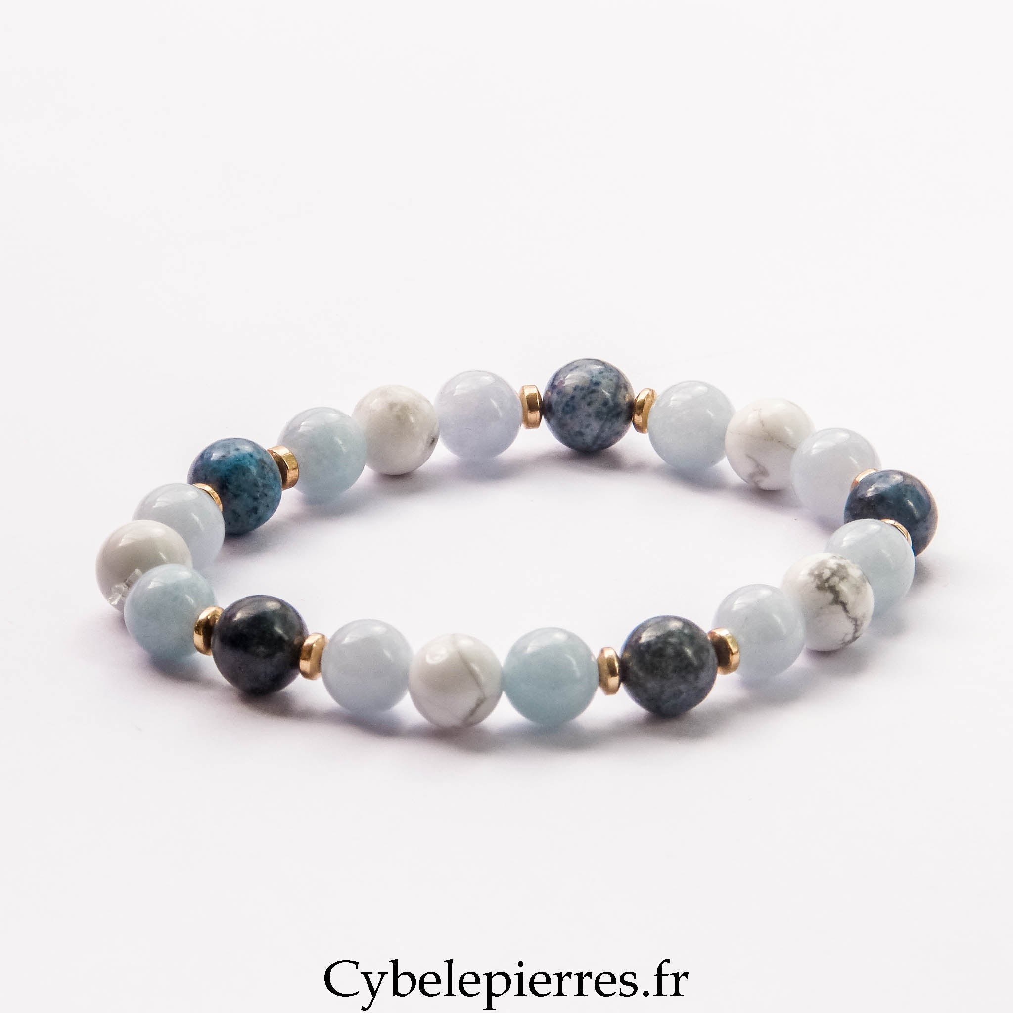 Bracelet Aigue-Marine, Dumortierite et Howlite (8 mm) – 18 cm | Calme, Clarté et Sérénité