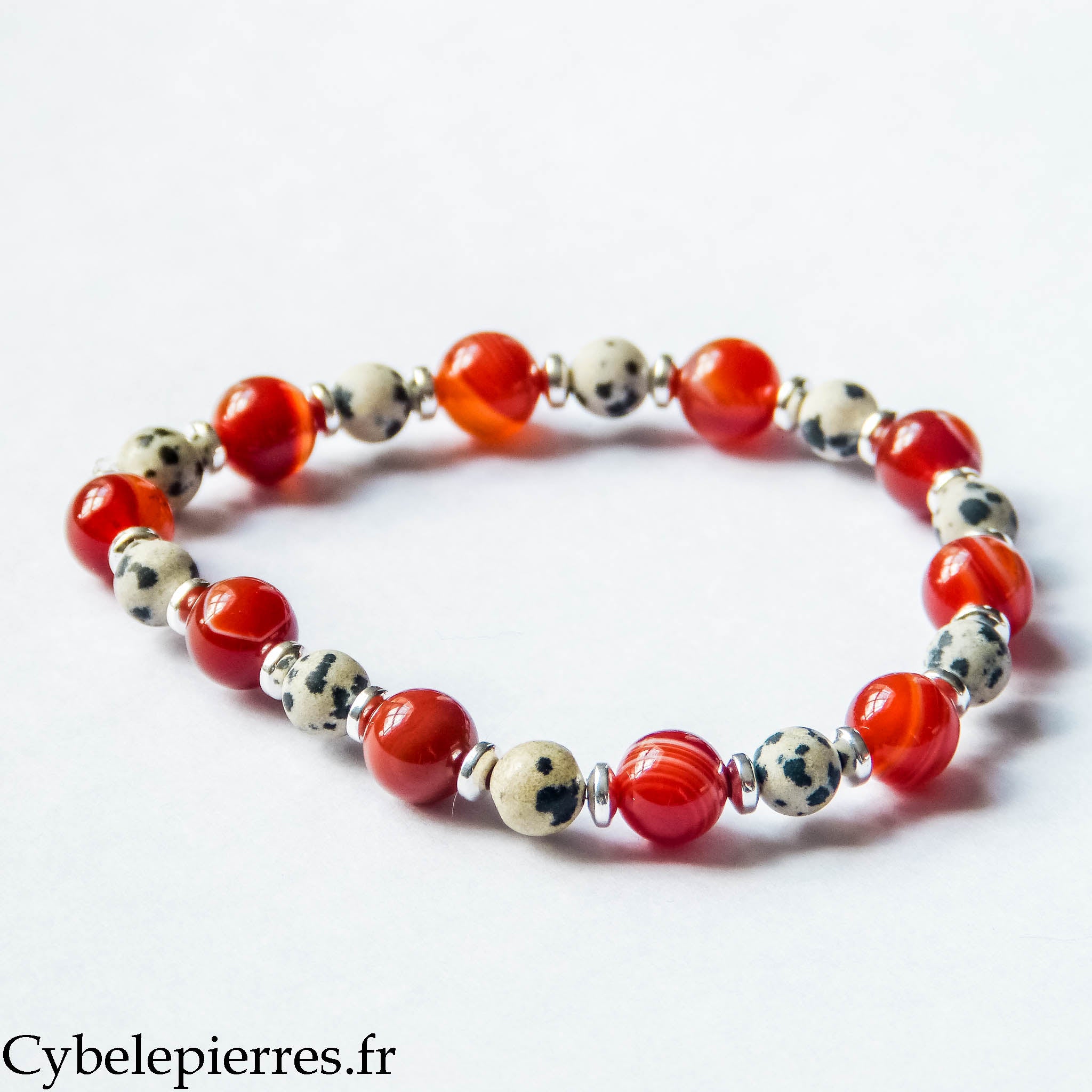 Bracelet Épanouissant – Cornaline et Jaspe Dalmatien (6 et 8 mm) – 18 cm | Joie, Élan et Ancrage