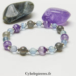 Bracelet Avenir Souriant - Améthyste, Fluorine Bleue et Labradorite (8mm et 6mm) - 18 cm | Intuition et Clarté