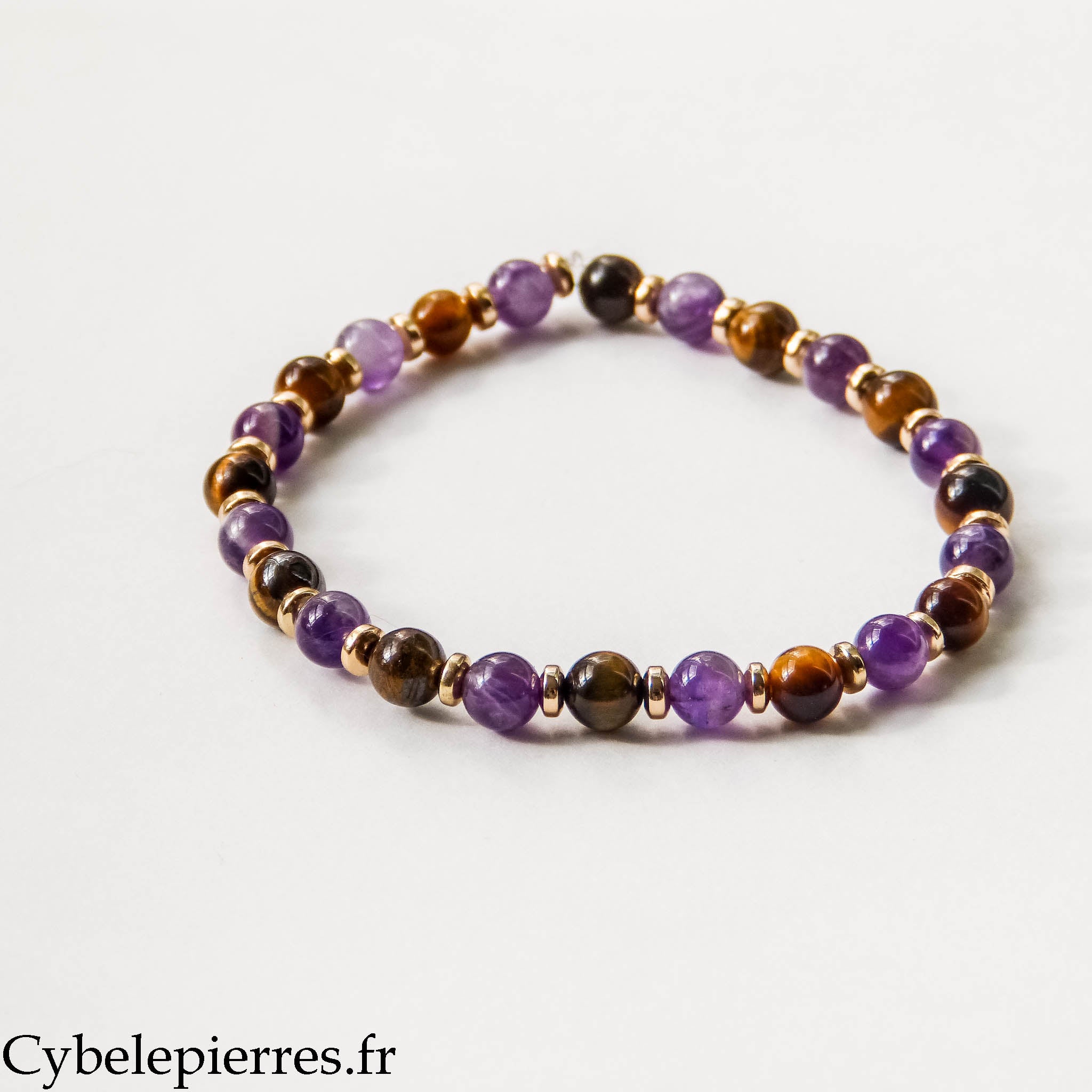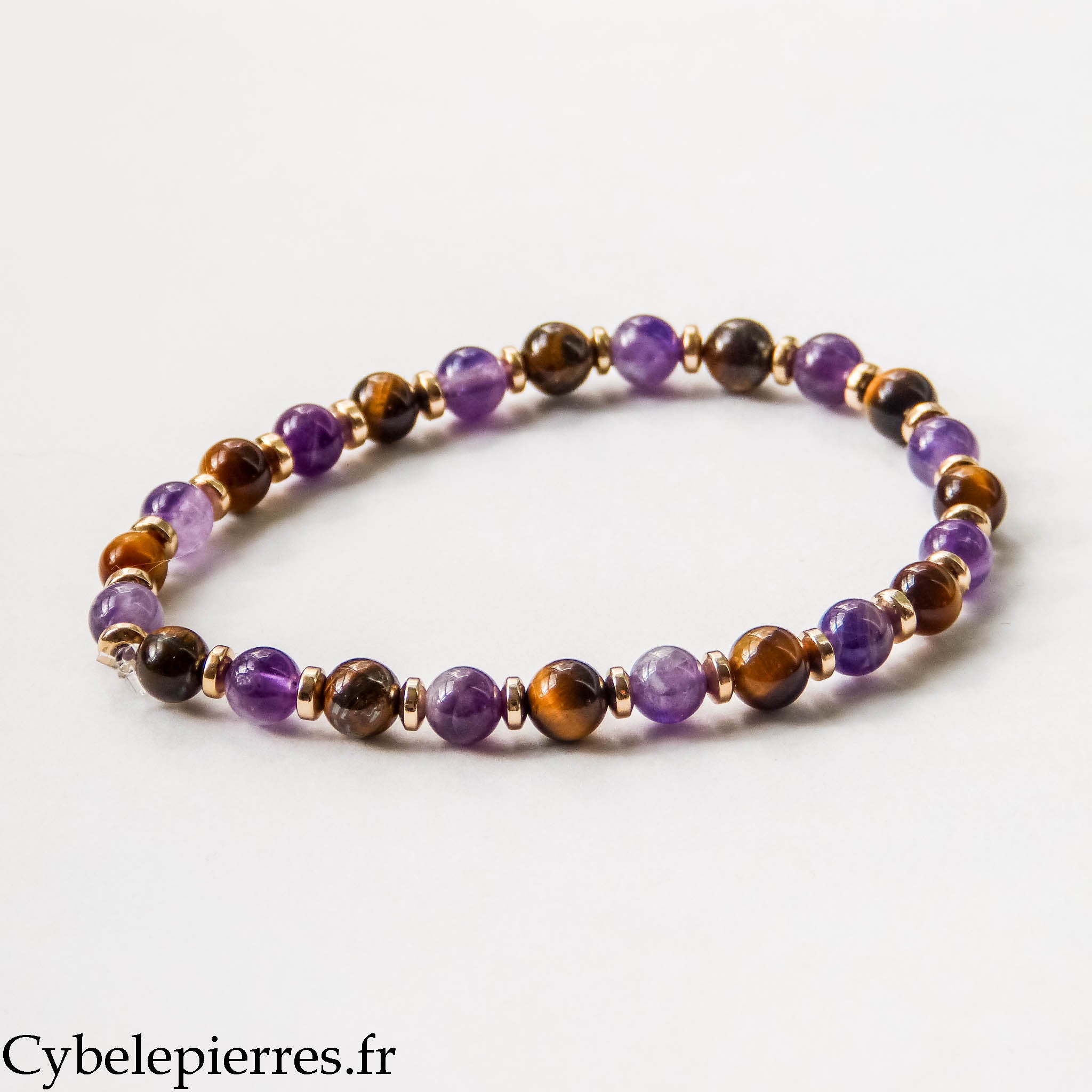 Bracelet Dévouement – Améthyste & Œil de Tigre (6 mm) - 17 cm | Protection et Détermination