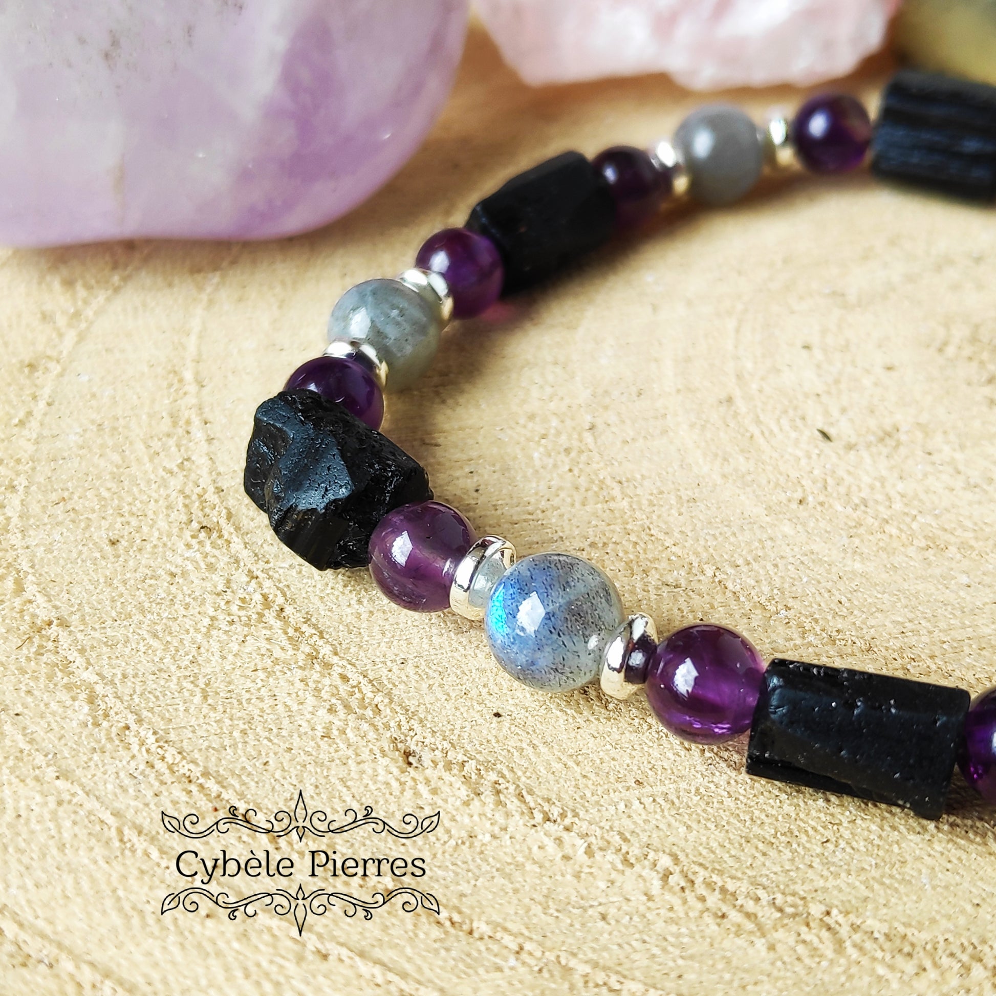 Bracelet Beive- Améthyste, Labradorite et Tourmaline (10mm et 6mm) - 16cm