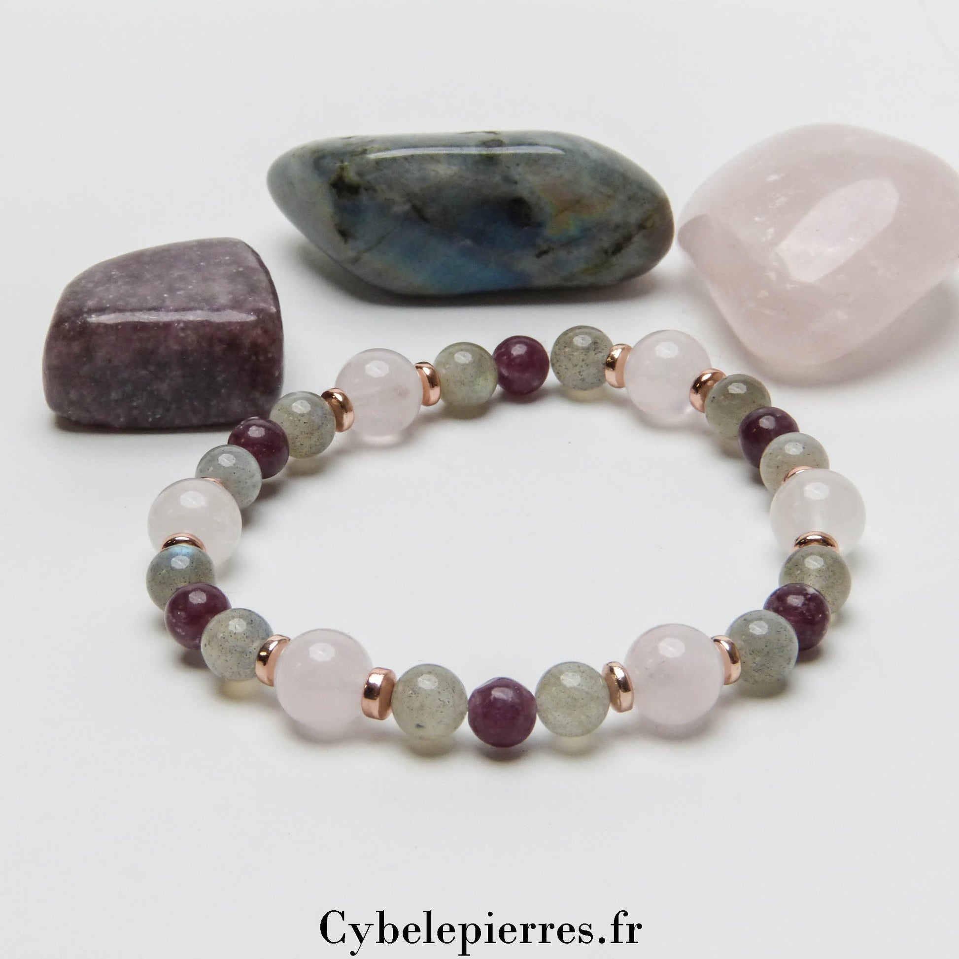 Bracelet Bye-Bye les Insomnies ! – Quartz Rose, Labradorite & Lépidolite (6mm et 8mm) - 18cm | Apaisement et Sérénité