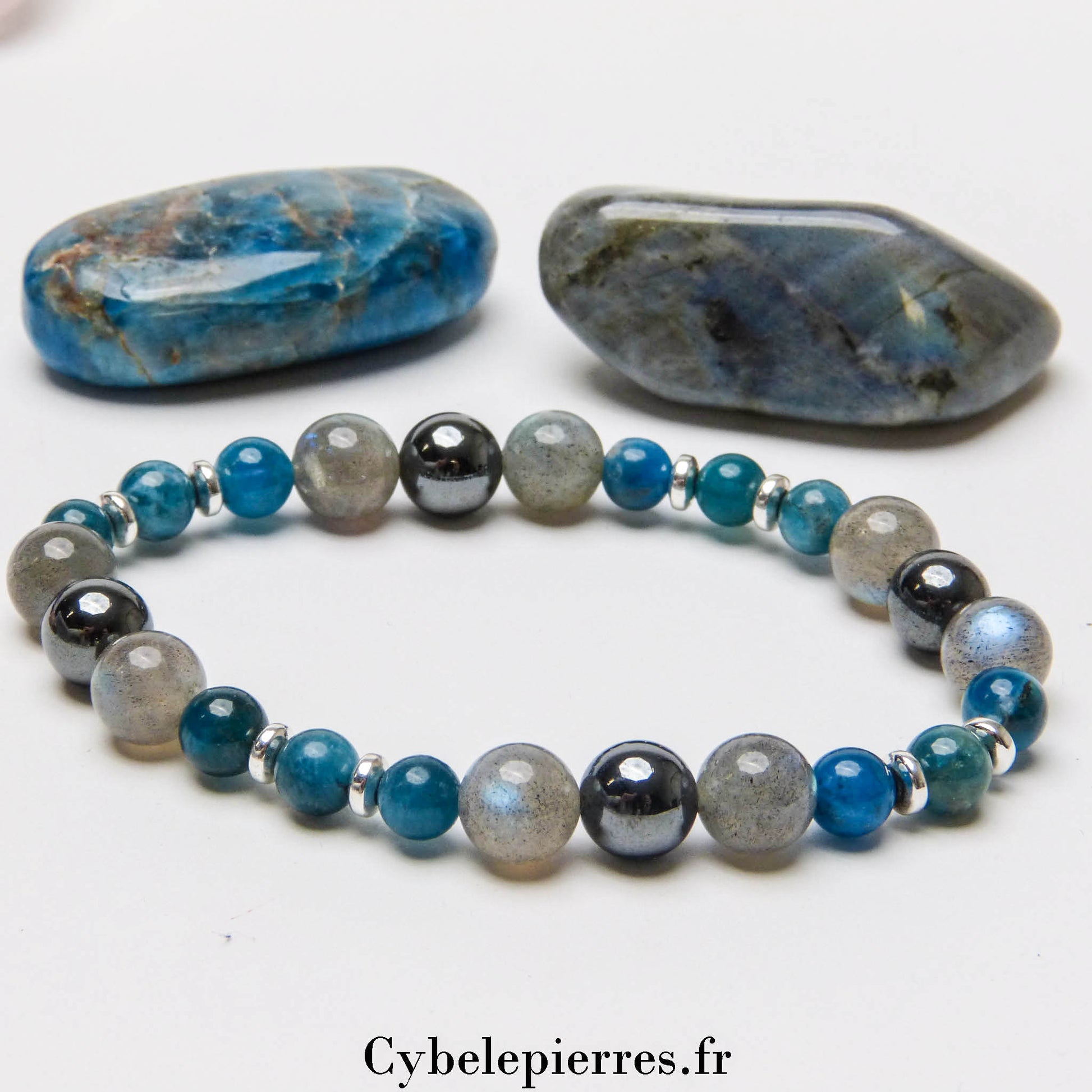 Bracelet Communication et Volonté – Apatite Bleue, Hématite & Labradorite (6 mm & 8 mm) - 18 cm | Clarté et Force Intérieure