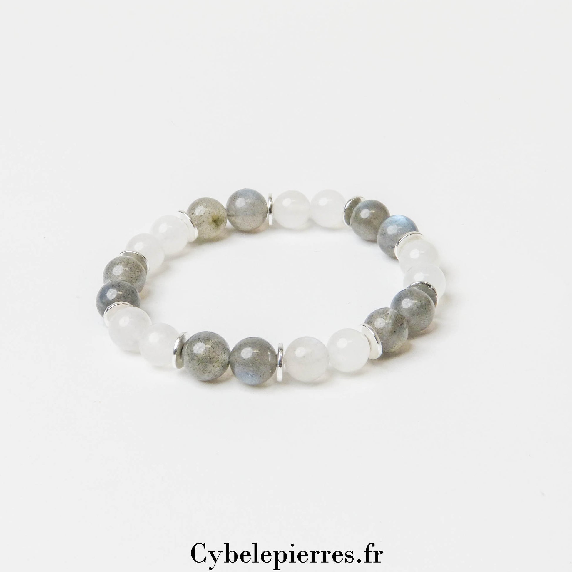 Ce bracelet en pierres naturelles associe la puissance de la Labradorite et la douceur de la Labradorite Blanche (Péristérite) pour un équilibre parfait entre protection, confiance et apaisement.