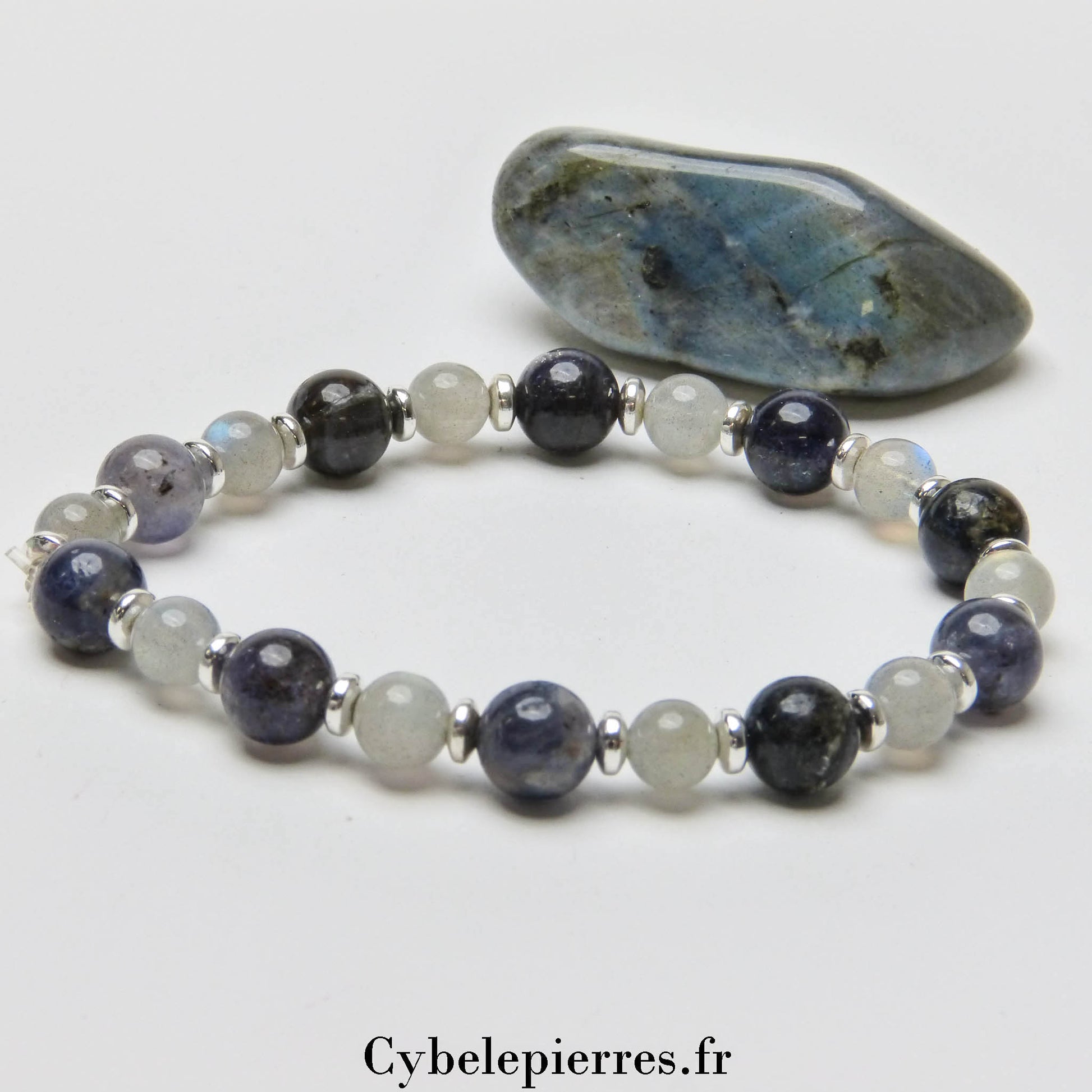 - Pierres naturelles : Iolite (Cordiérite) et Labradorite (6mm)