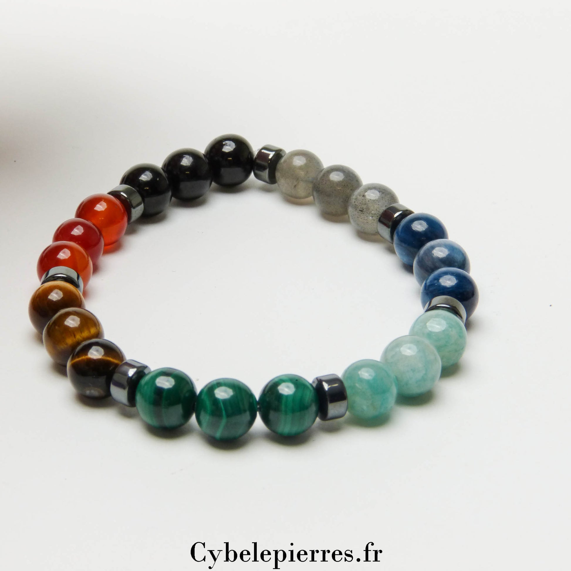 - Pierres naturelles : Tourmaline, Cornaline, Œil de Tigre, Malachite, Amazonite, Cyanite, Labradorite