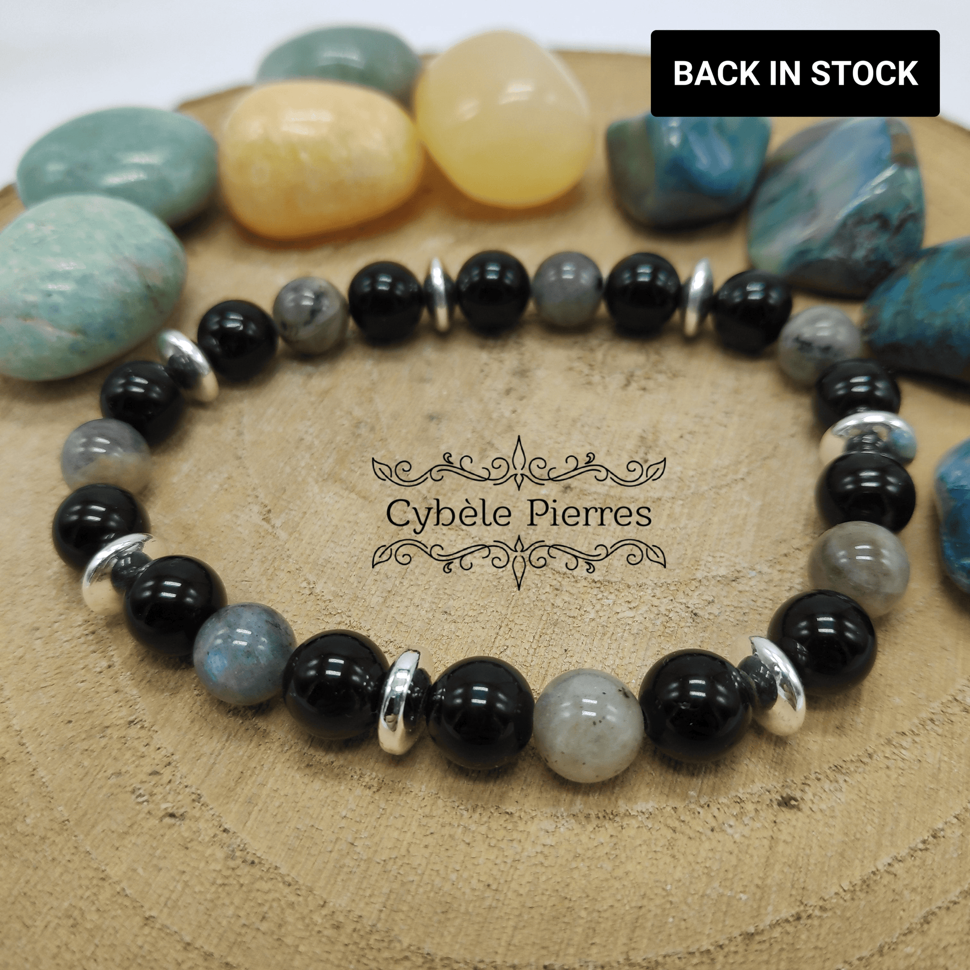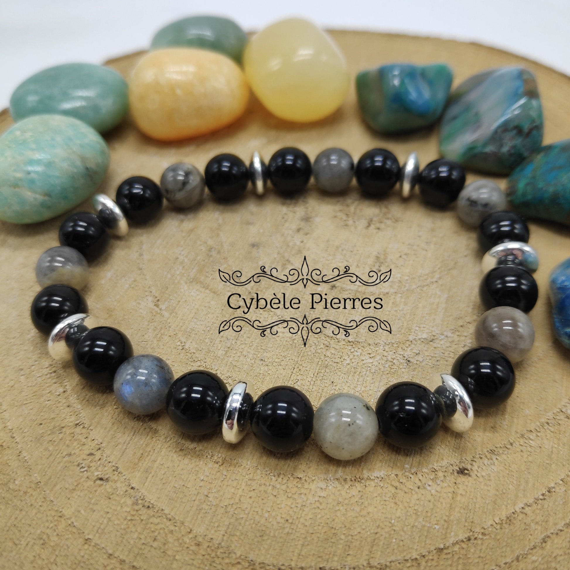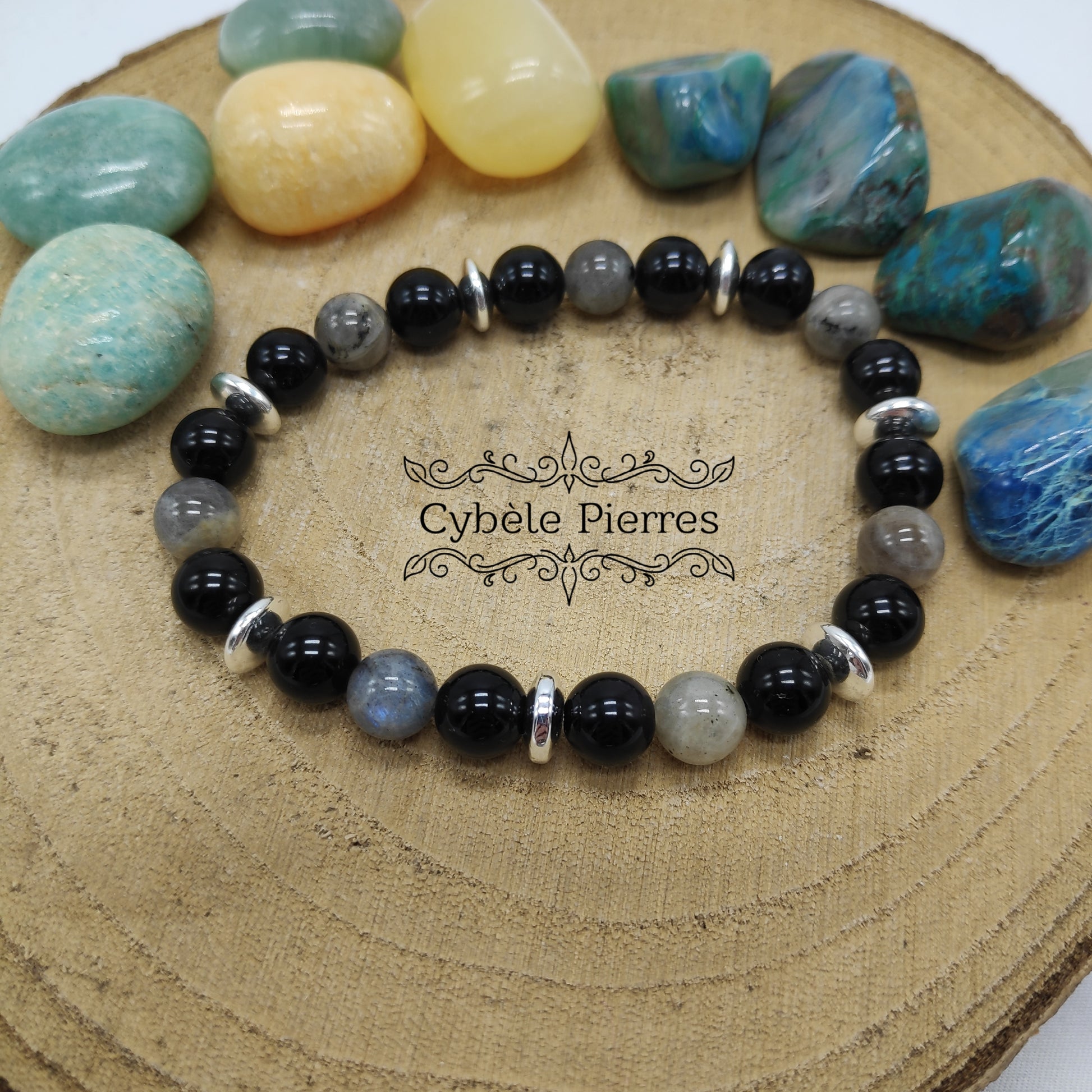 Bracelet Protection et Energie : Obsidienne Oeil Céleste et Labradorite (8mm) - 18cm