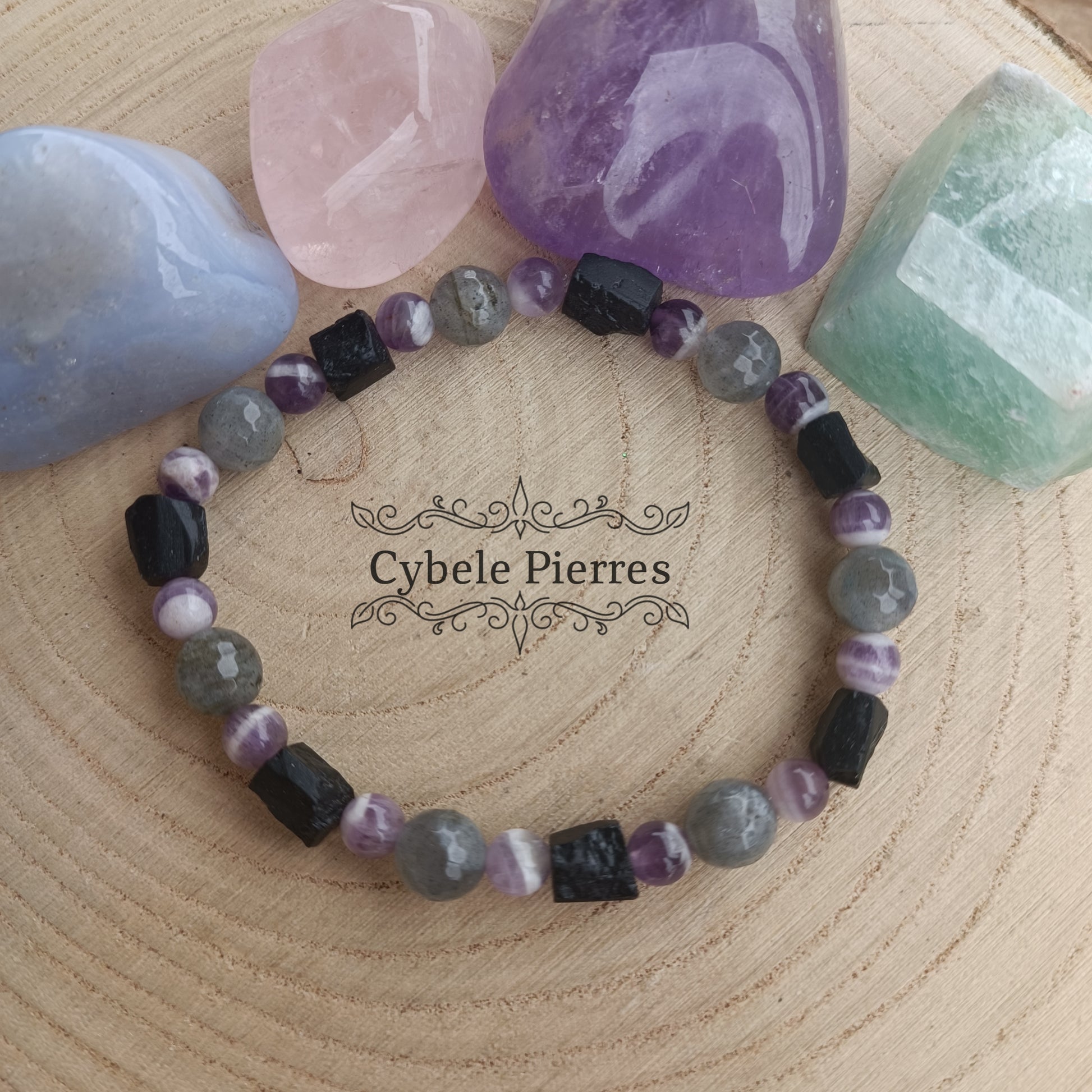 Bracelet Super protection - Tourmaline, Améthyste et Labradorite (10mm et 8mm )