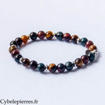 Bracelet Triple Protection – Œil de Faucon, Œil de Tigre & Œil de Taureau (6 mm) - 17 cm | Force et Stabilité
