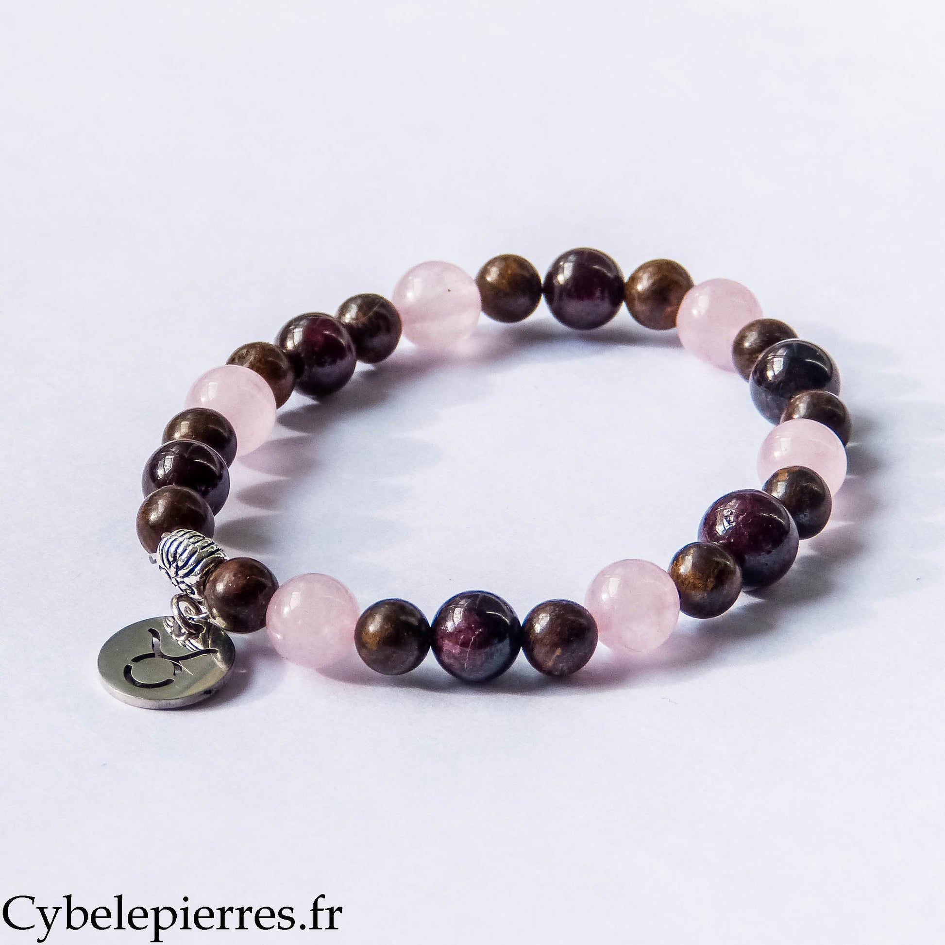 Pour ce bijou, j'ai choisi une alliance de Bronzite, de Quartz rose et de Grenat. Ce trio travaille en synergie pour répondre aux besoins spécifiques de ton signe astrologique :