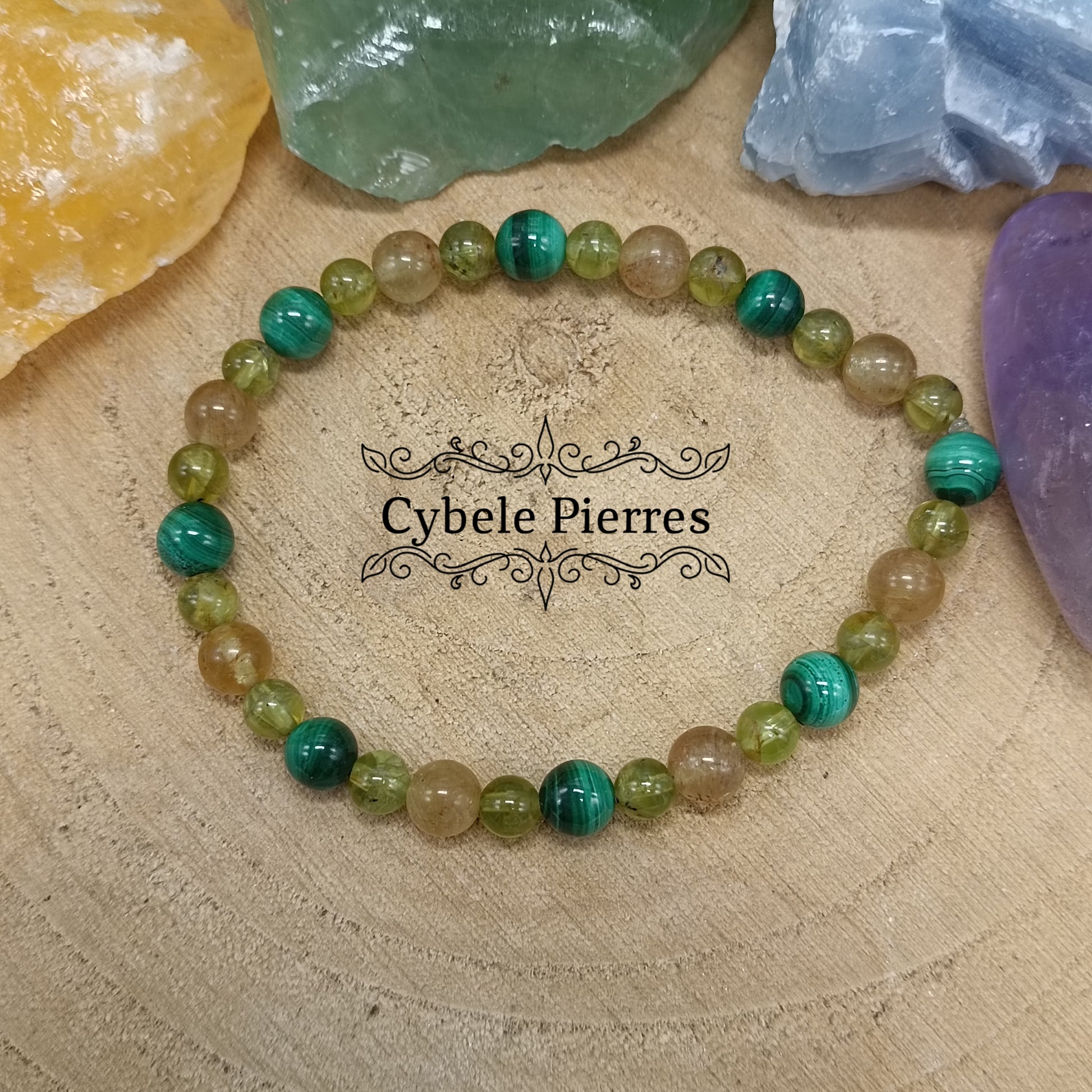 Bracelet Apprentissage - Péridot, Apatite jaune et Malachite (4 et 6mm) - 18cm