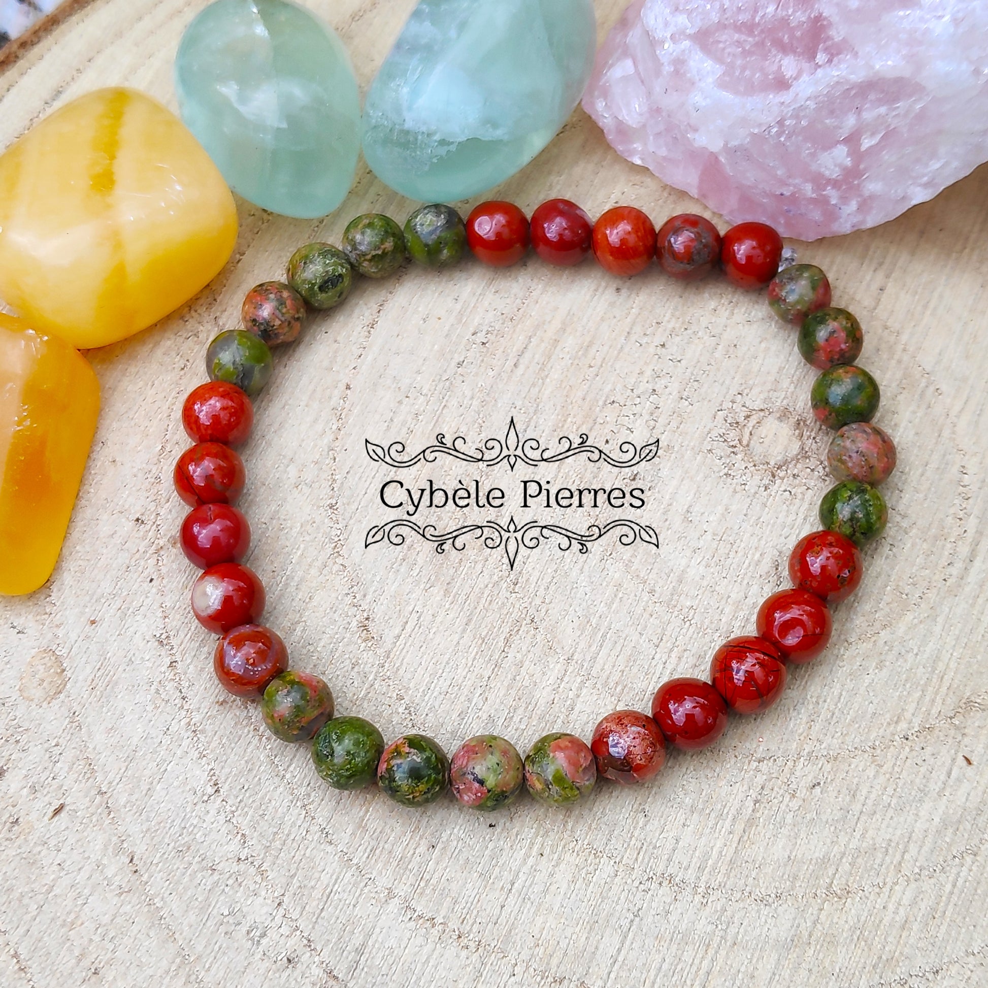 Bracelet Baubis - Unakite et Jaspe rouge (6mm)