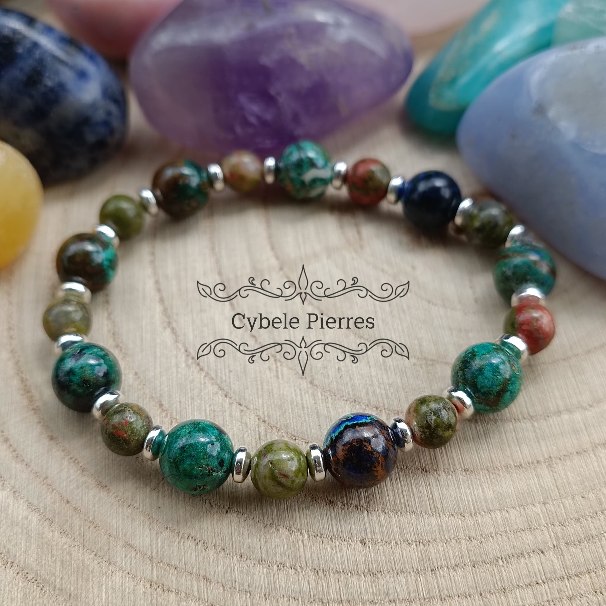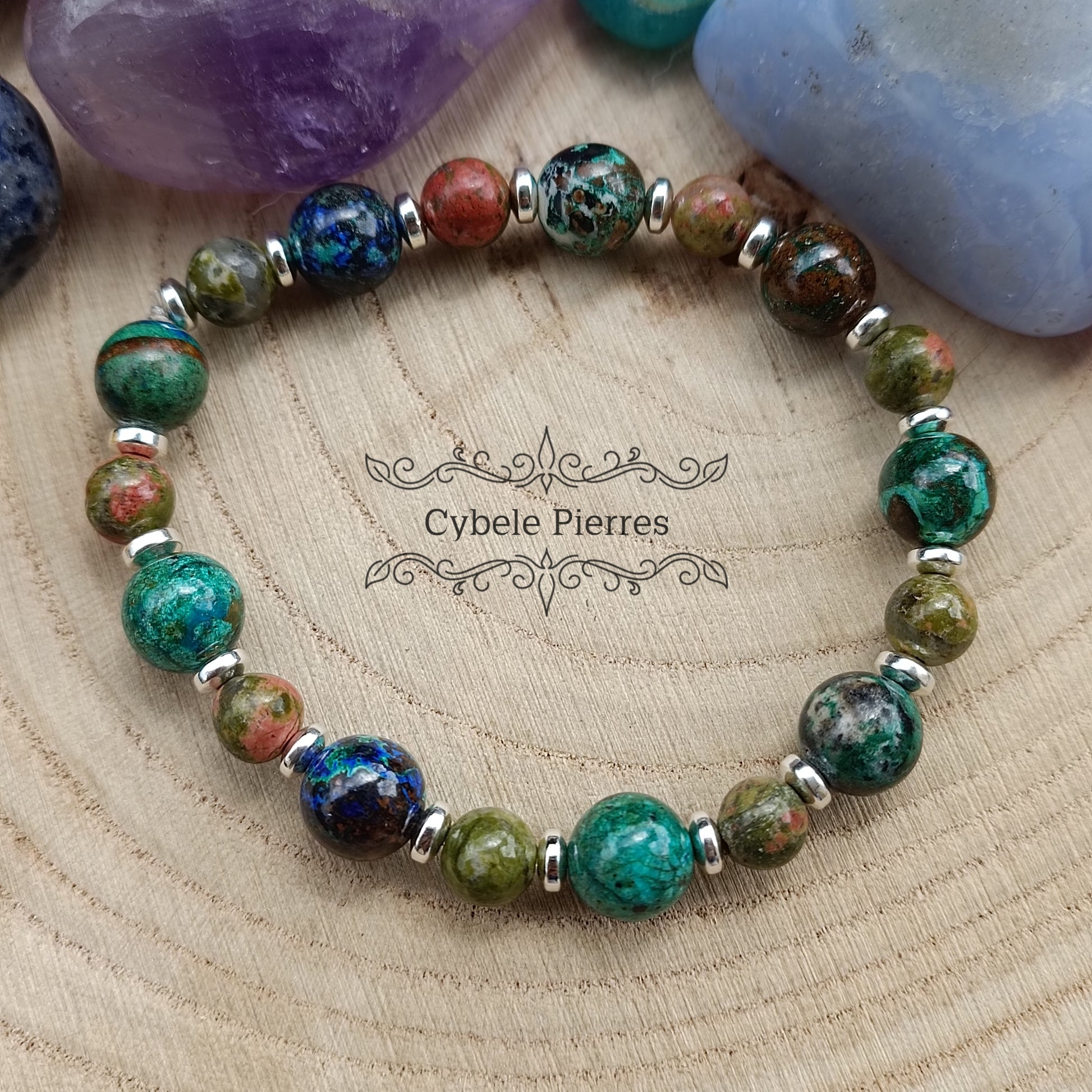 Bracelet Déblocage et Réconfort -Chrysocolle (6mm) et Unakite (8mm)
