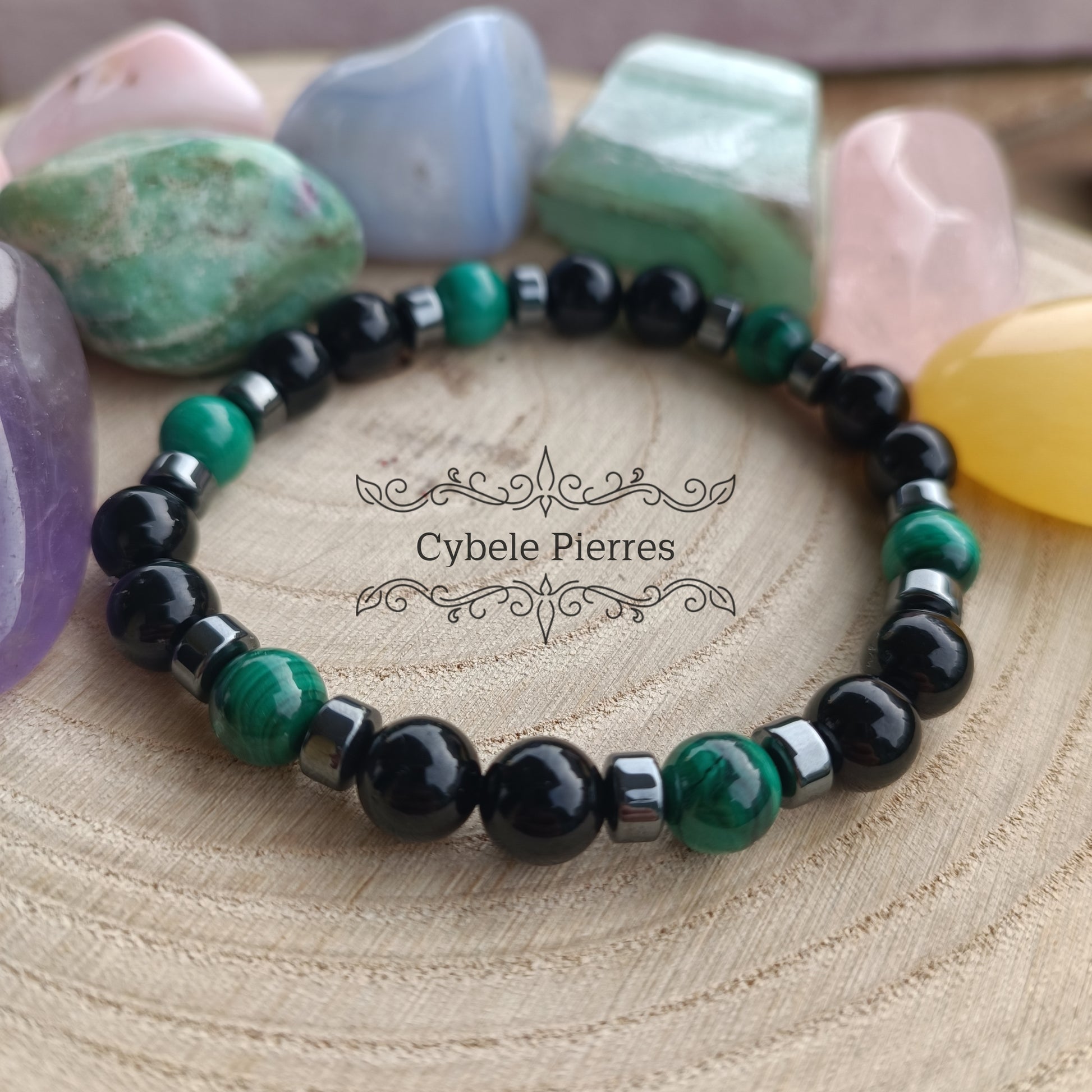 Bracelet Homme Déblocage - Malachite et Tourmaline - 8mm