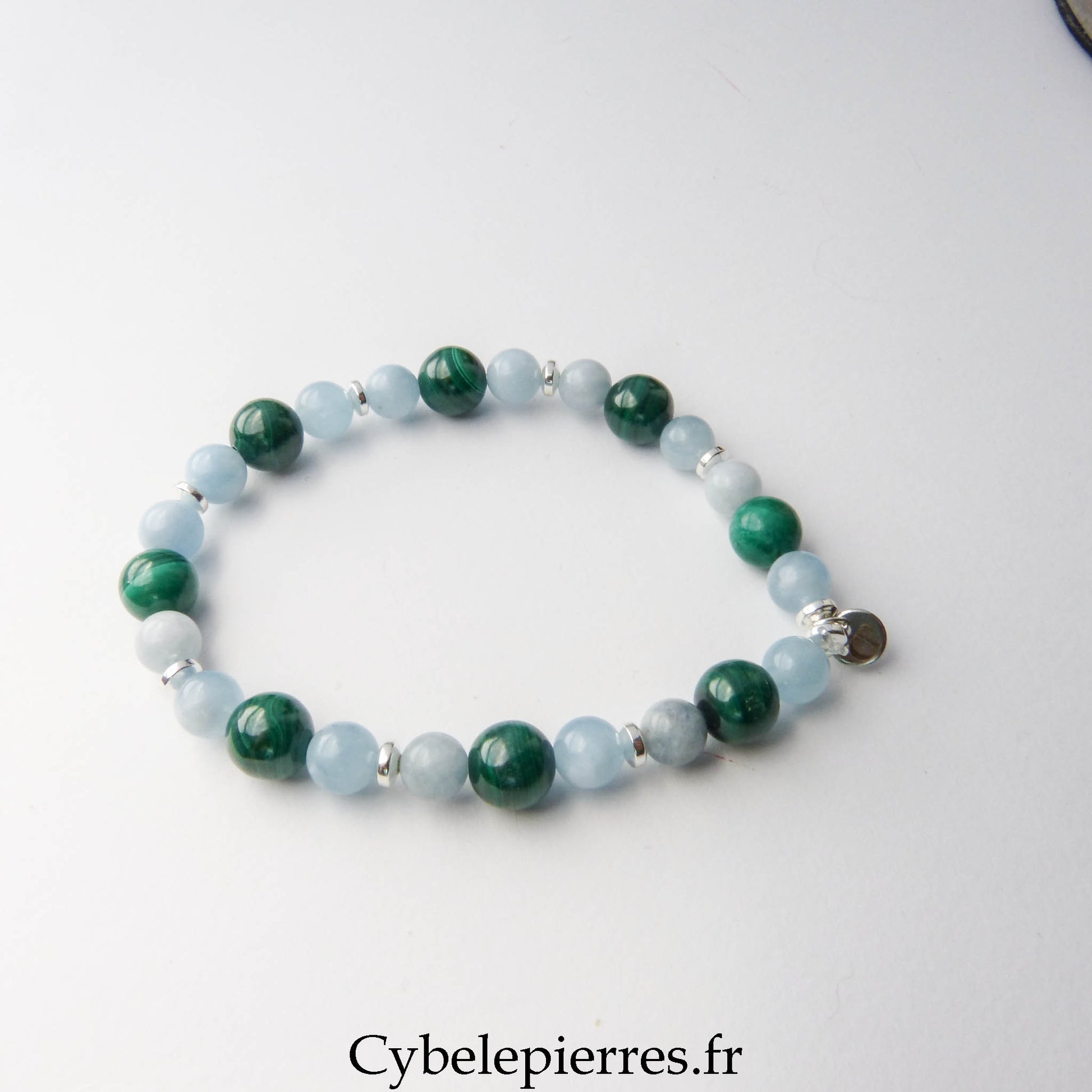 Bracelet Libération des Émotions – Aigue-marine & Malachite (6mm et 8mm) – 18 cm | Apaisement et Confiance