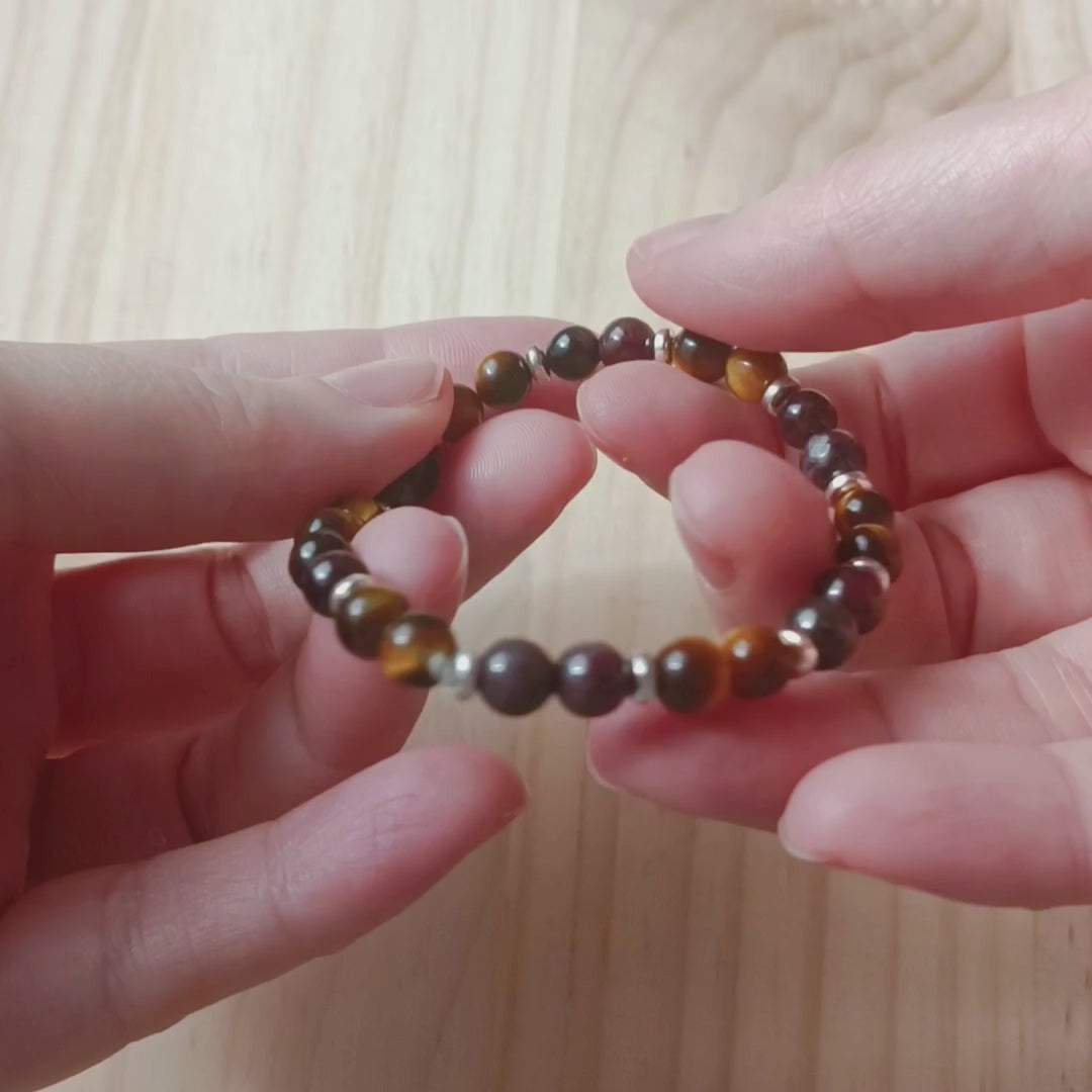 Bracelet Œil de Tigre et Grenat (6mm) - 17cm