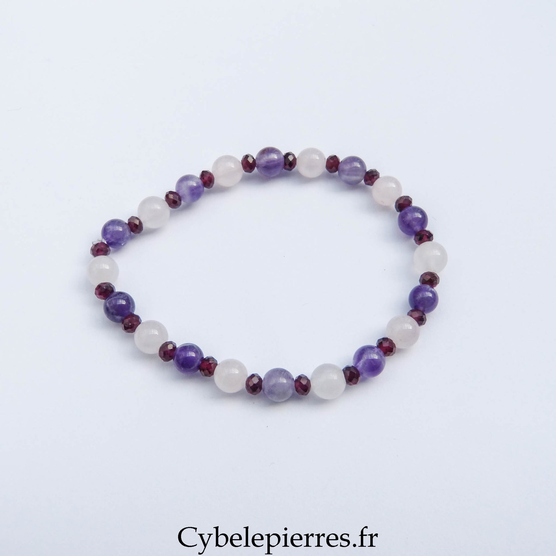 Bracelet Couple - Grenat, Quartz rose et Améthyste (3mm et 6mm)