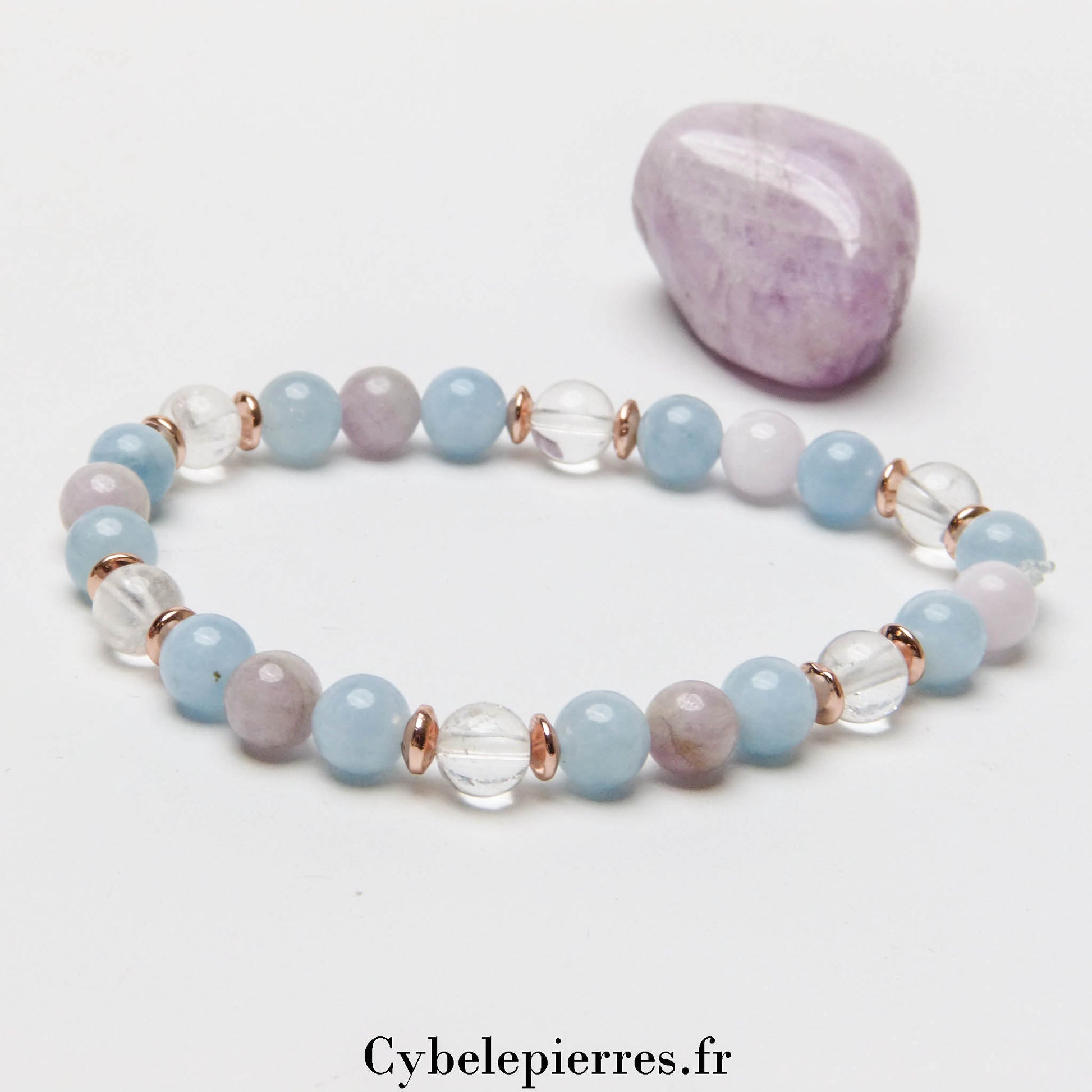 Ce bracelet en Cristal de Roche, Aigue-marine et Kunzite est conçu pour apporter calme, protection et bien-être émotionnel. Idéal pour favoriser une énergie fluide et harmonieuse au quotidien.