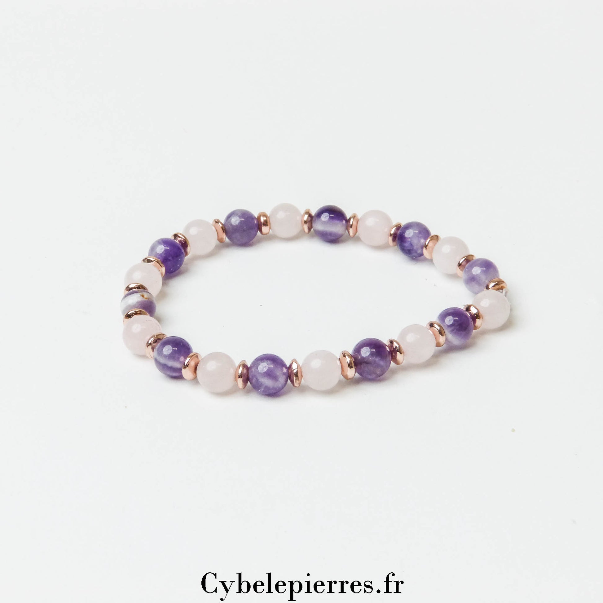 Bracelet Amour Infini – Améthyste & Quartz Rose (6 mm) - 18 cm | Harmonie et Sérénité