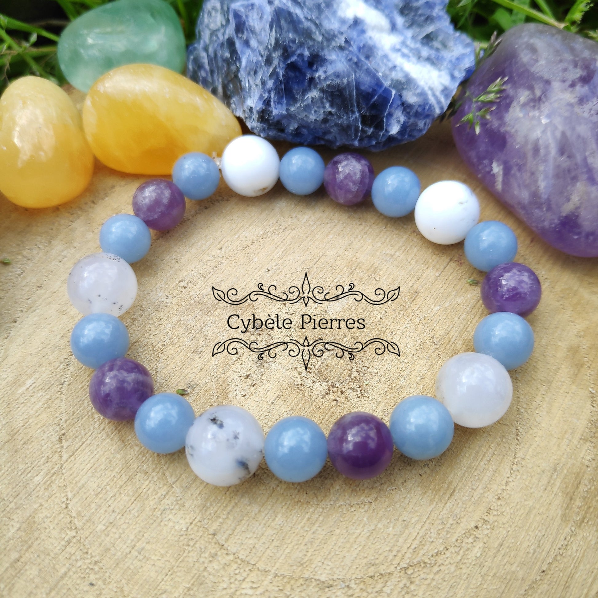 Bracelet Amour parfait - Opale laiteuse, Angélite et Améthyste (10mm et 8mm)