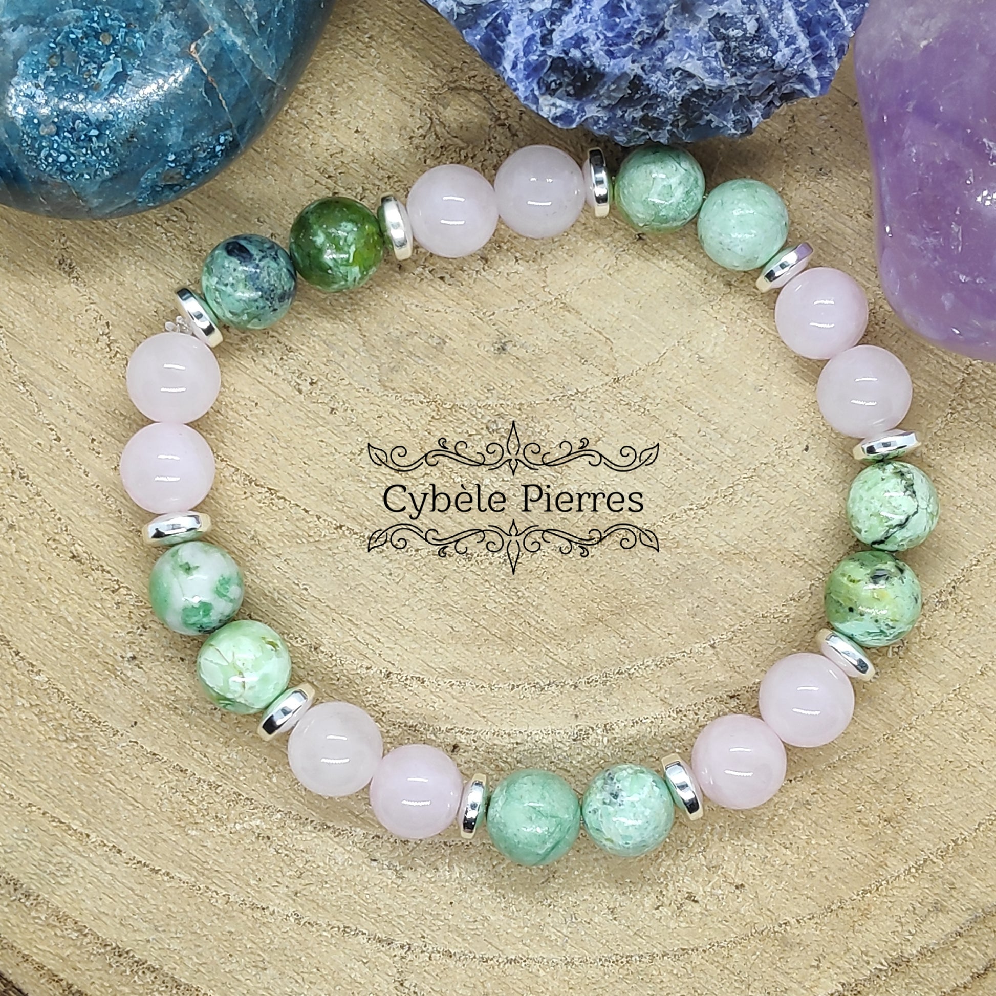Bracelet Attis- Variscite et Quartz Rose (8mm)