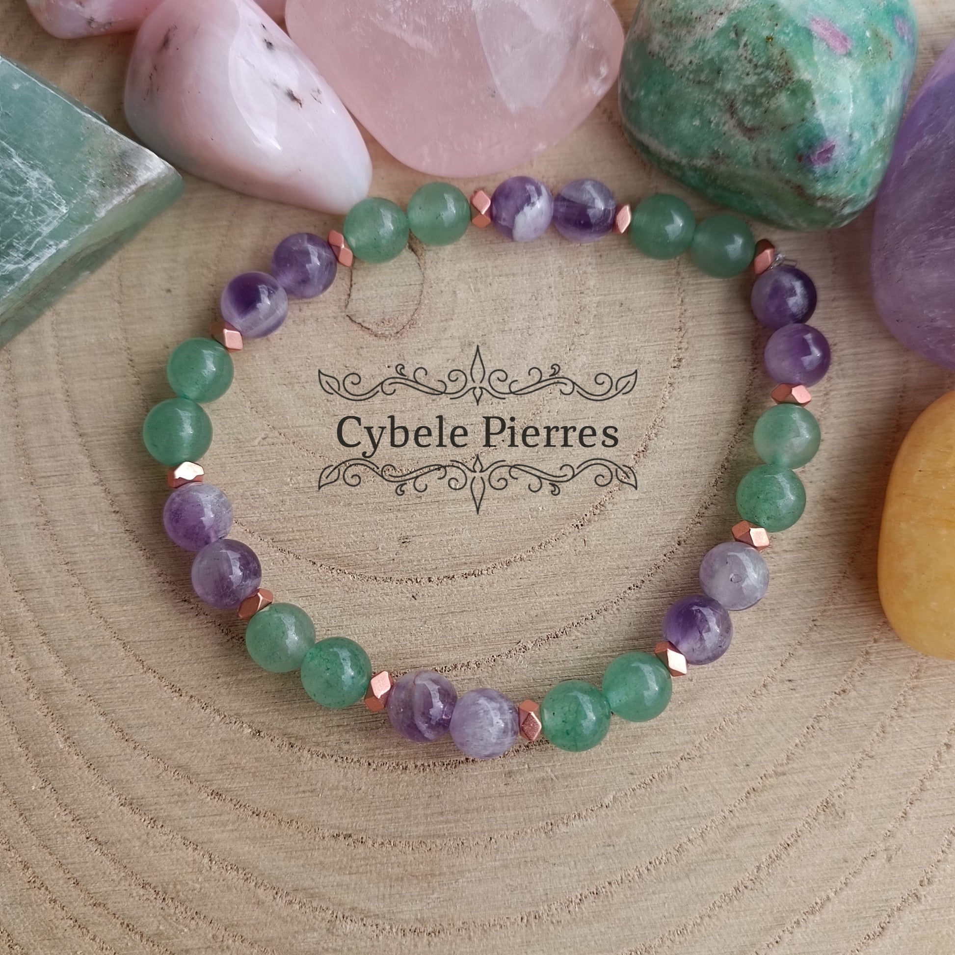 Bracelet Aventurine et Améthyste - 6mm