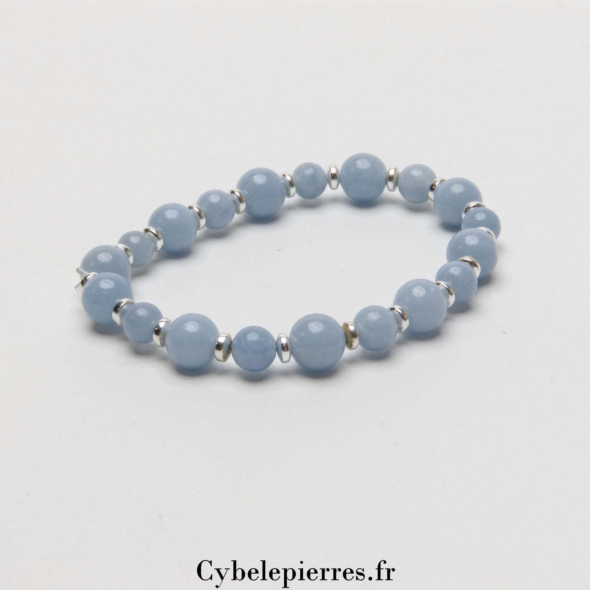 Bracelet Bonheur – Angélite (8mm & 6mm) – 18 cm | Sérénité & Confiance
