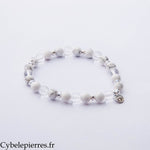 Un bracelet épuré et apaisant, composé de perles naturelles de cristal de roche et de howlite de 6 mm.