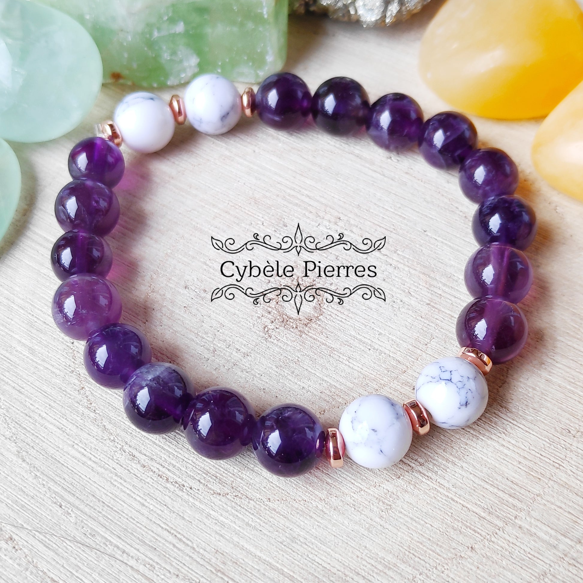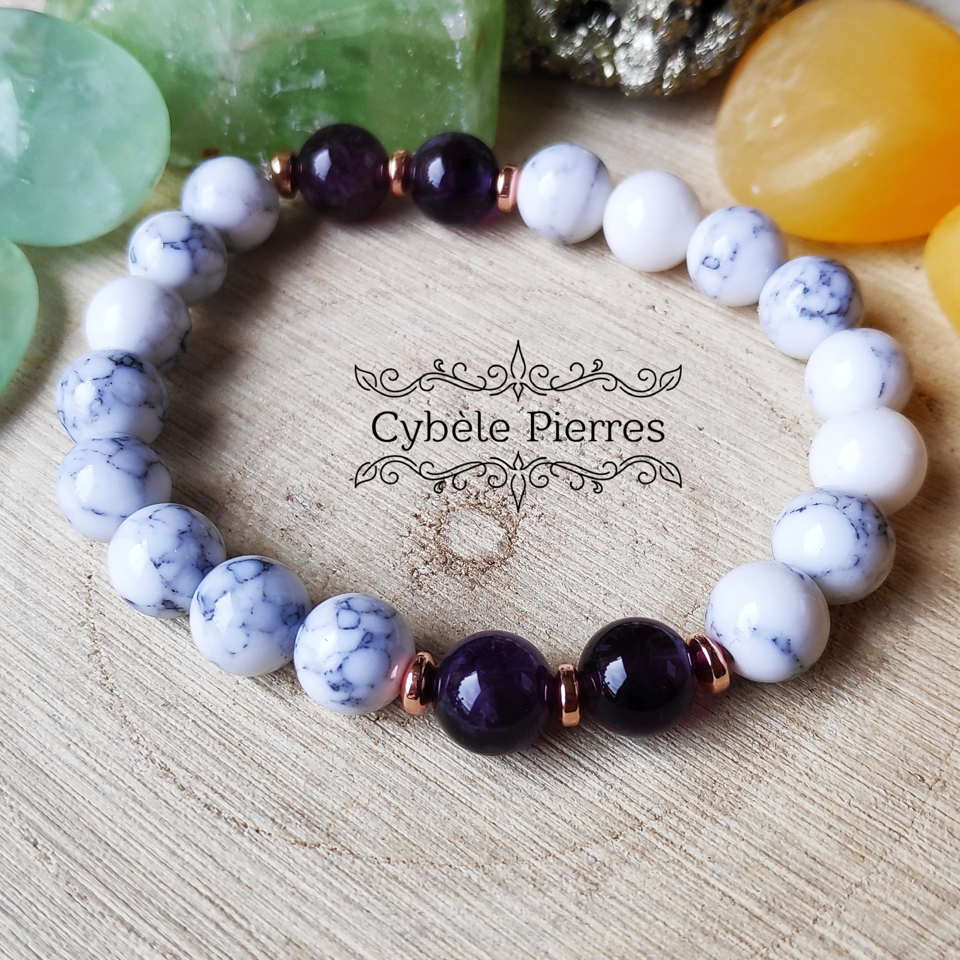 Bracelets Duo Tendresse - Améthyste et Howlite(8mm)