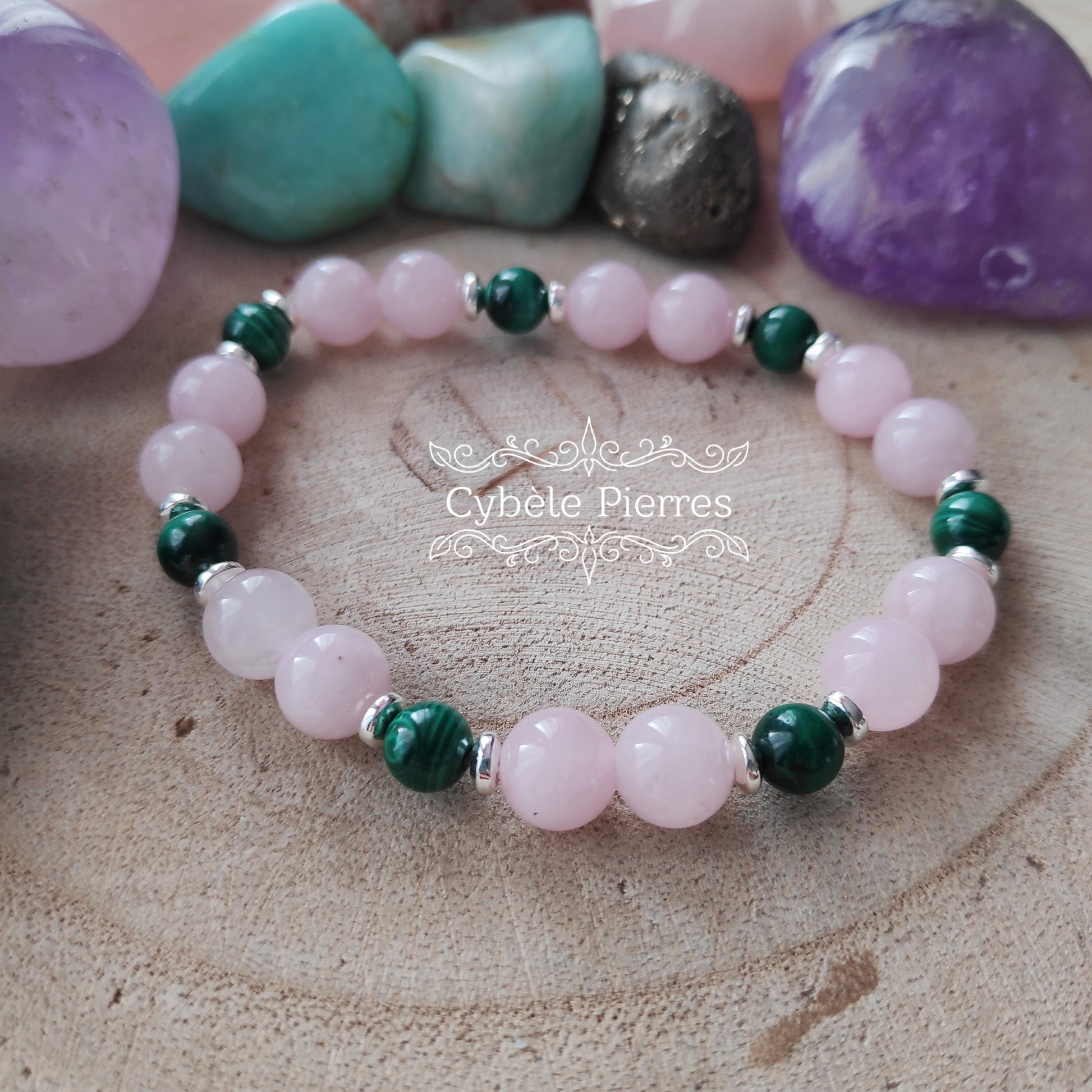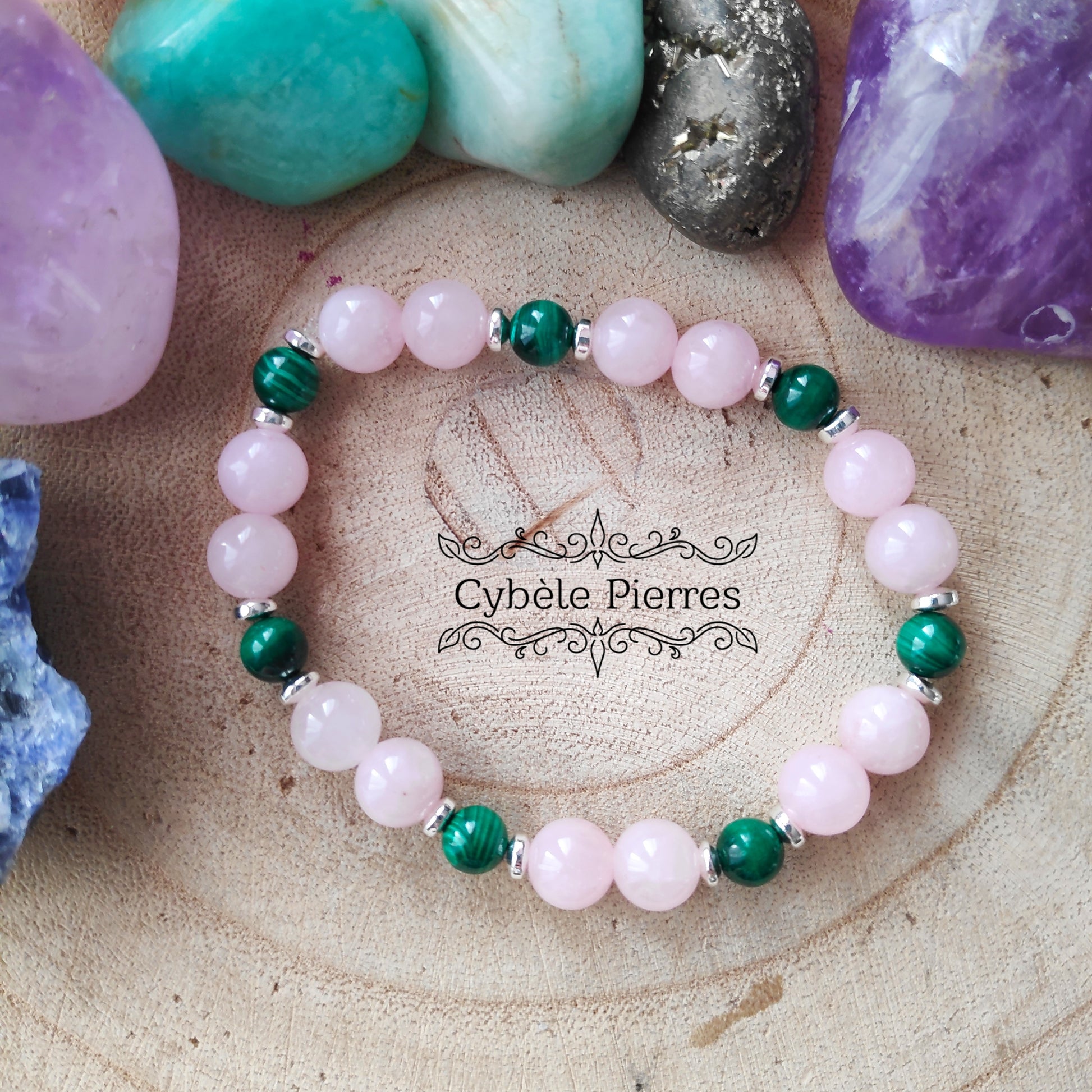 Bracelet Flot continu - Quartz rose et Malachite (8mm et 6mm)