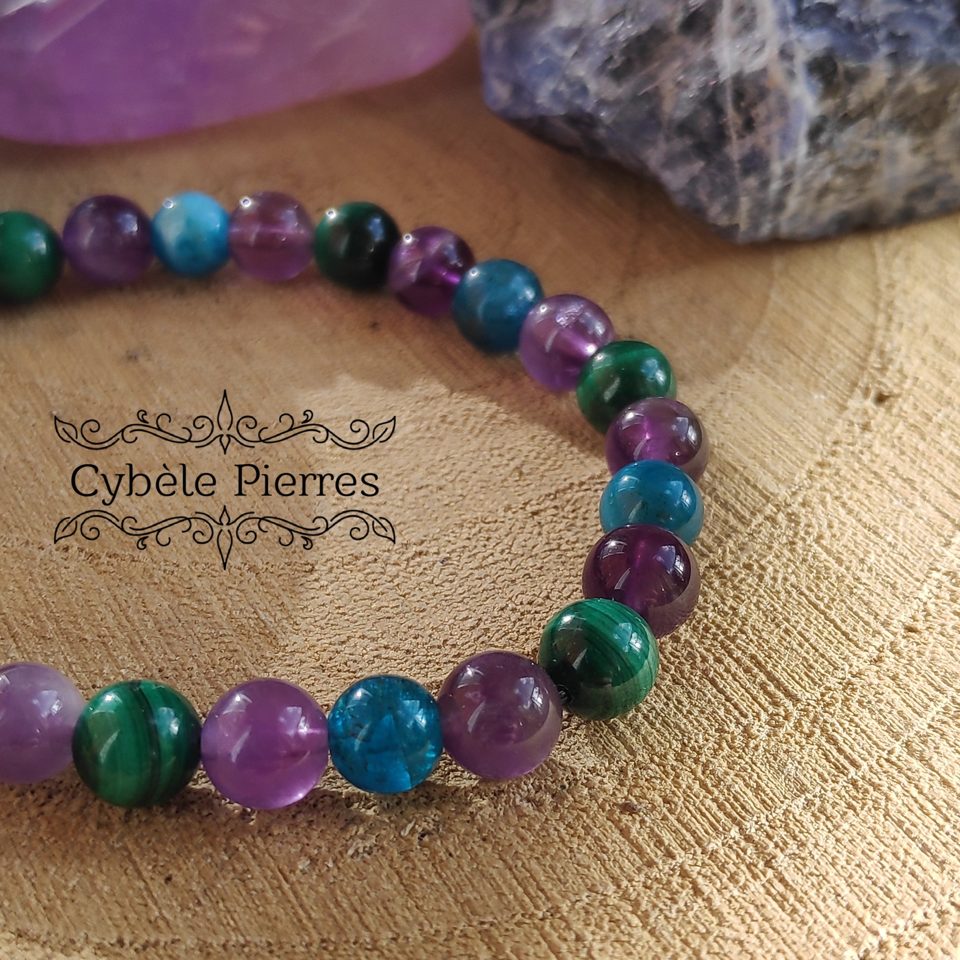 Bracelet féerie : Améthyste, Malachite et Apatite bleue (6mm)