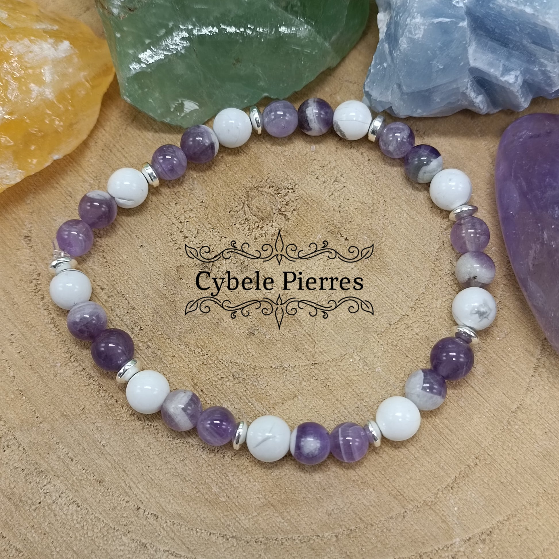 Bracelet Nuances - Améthyste, Améthyste rubannée et Howlite - 18cm (6mm)