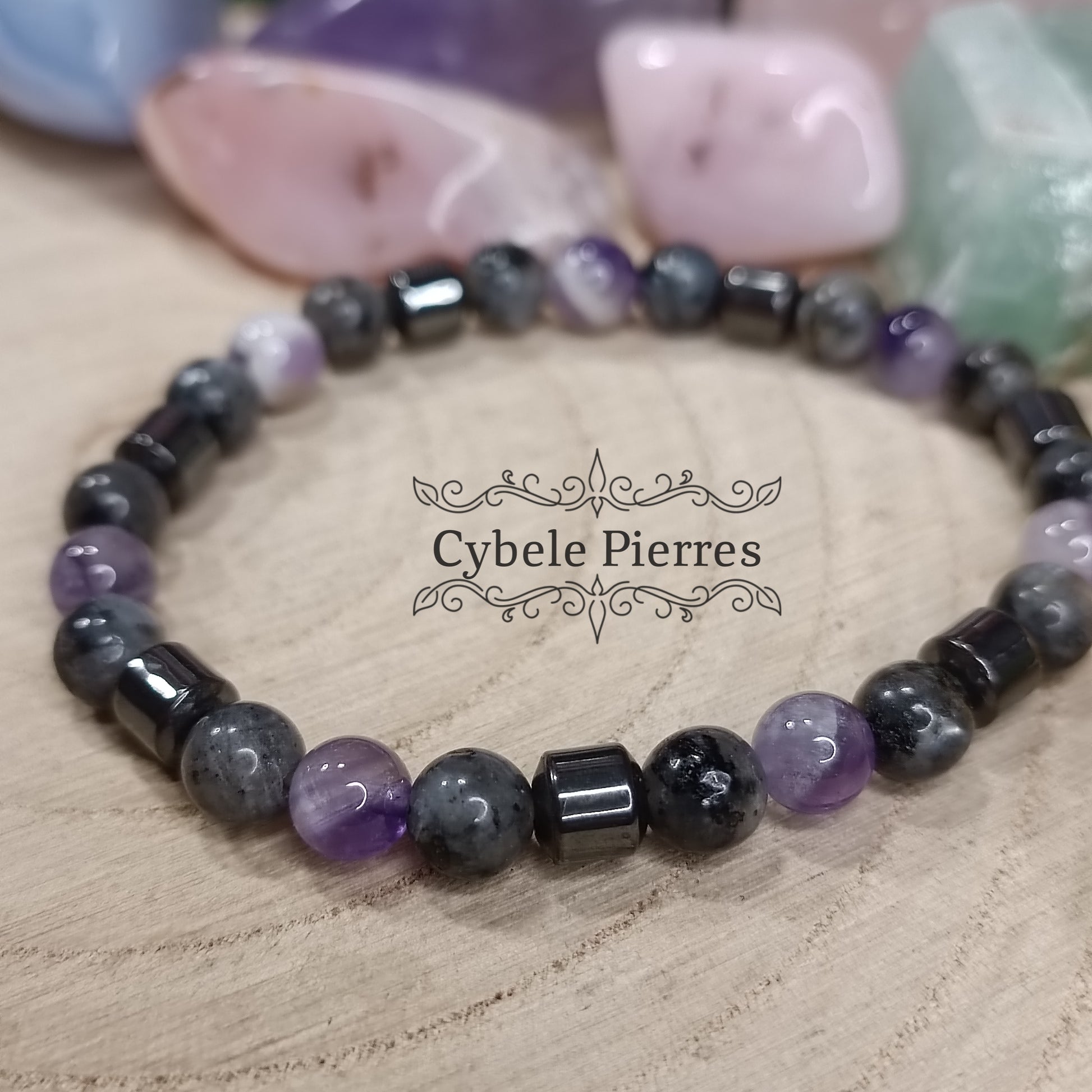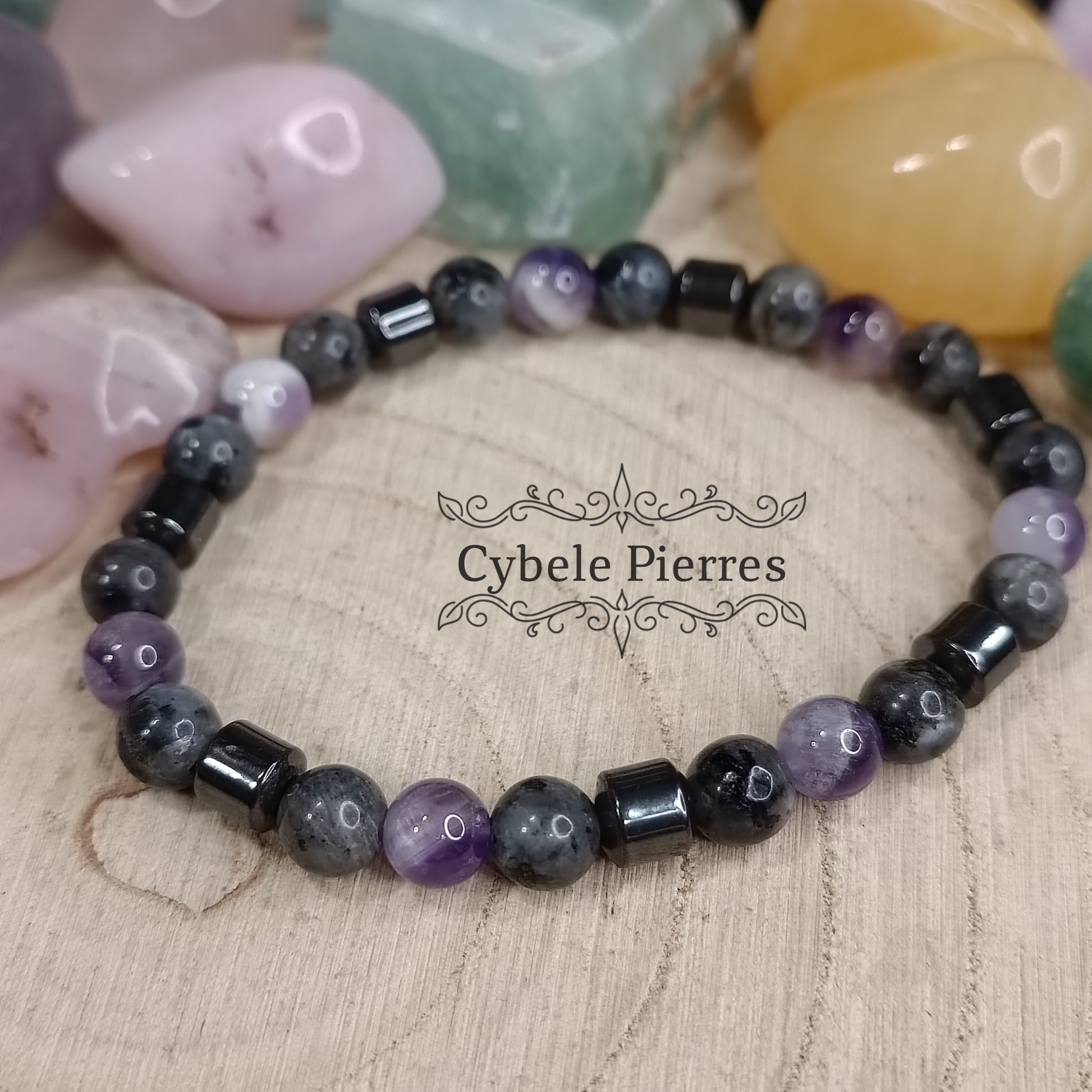 Bracelet Réconfort et Compréhension - Améthyste et Larvikite (6mm) - 17cm
