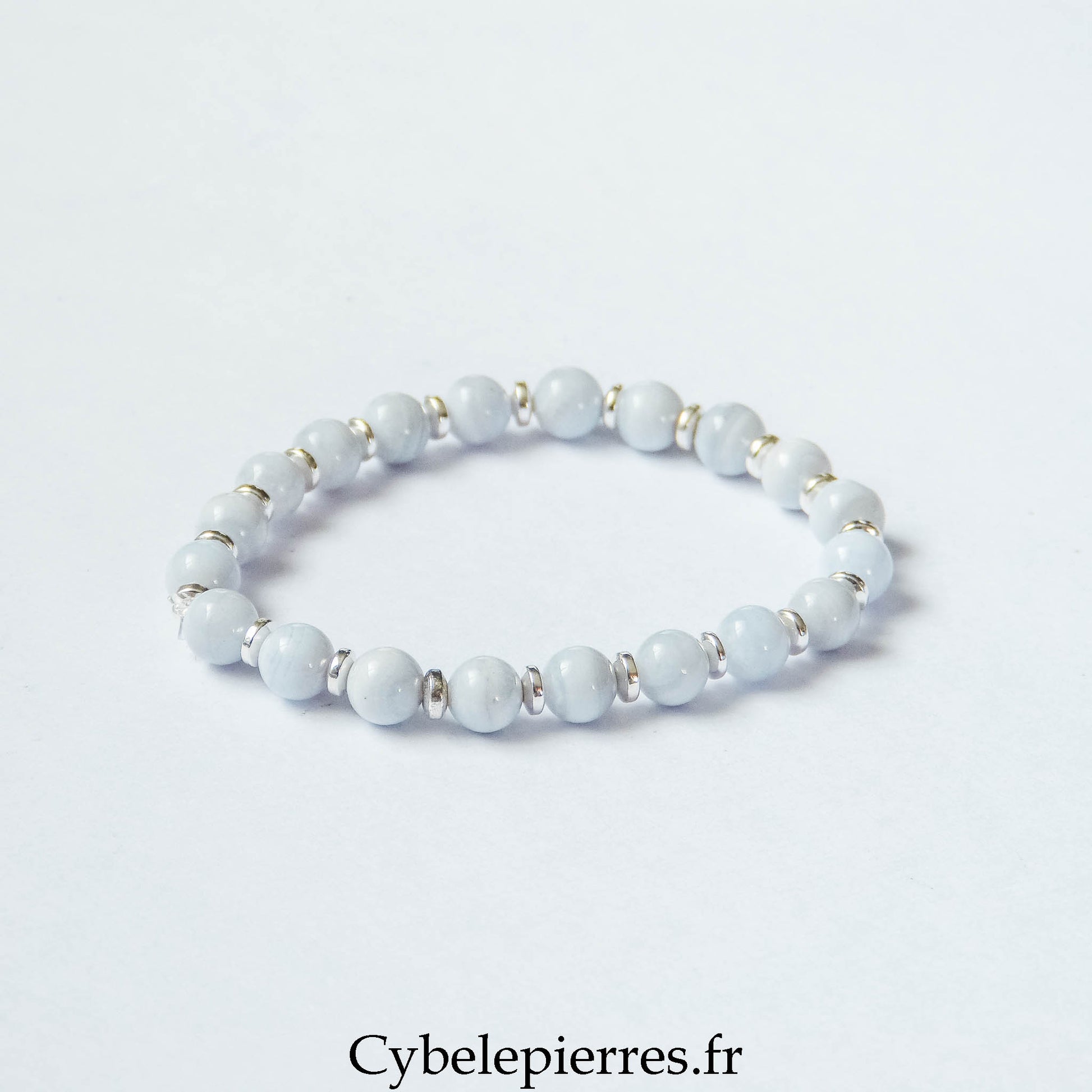 Bracelet Serein – Calcédoine Bleue (6 mm) – 17 cm | Calme, Réconfort et Communication