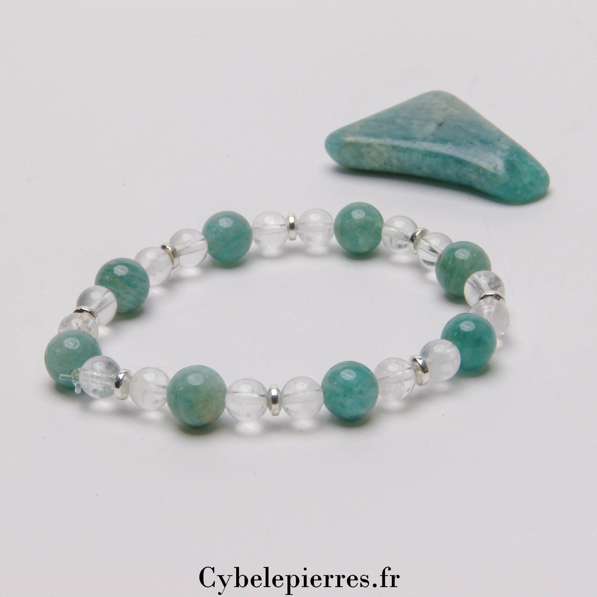 Bracelet Sérénité – Amazonite et Cristal de Roche (8mm et 6mm) – 18 cm | Harmonie et Clarté