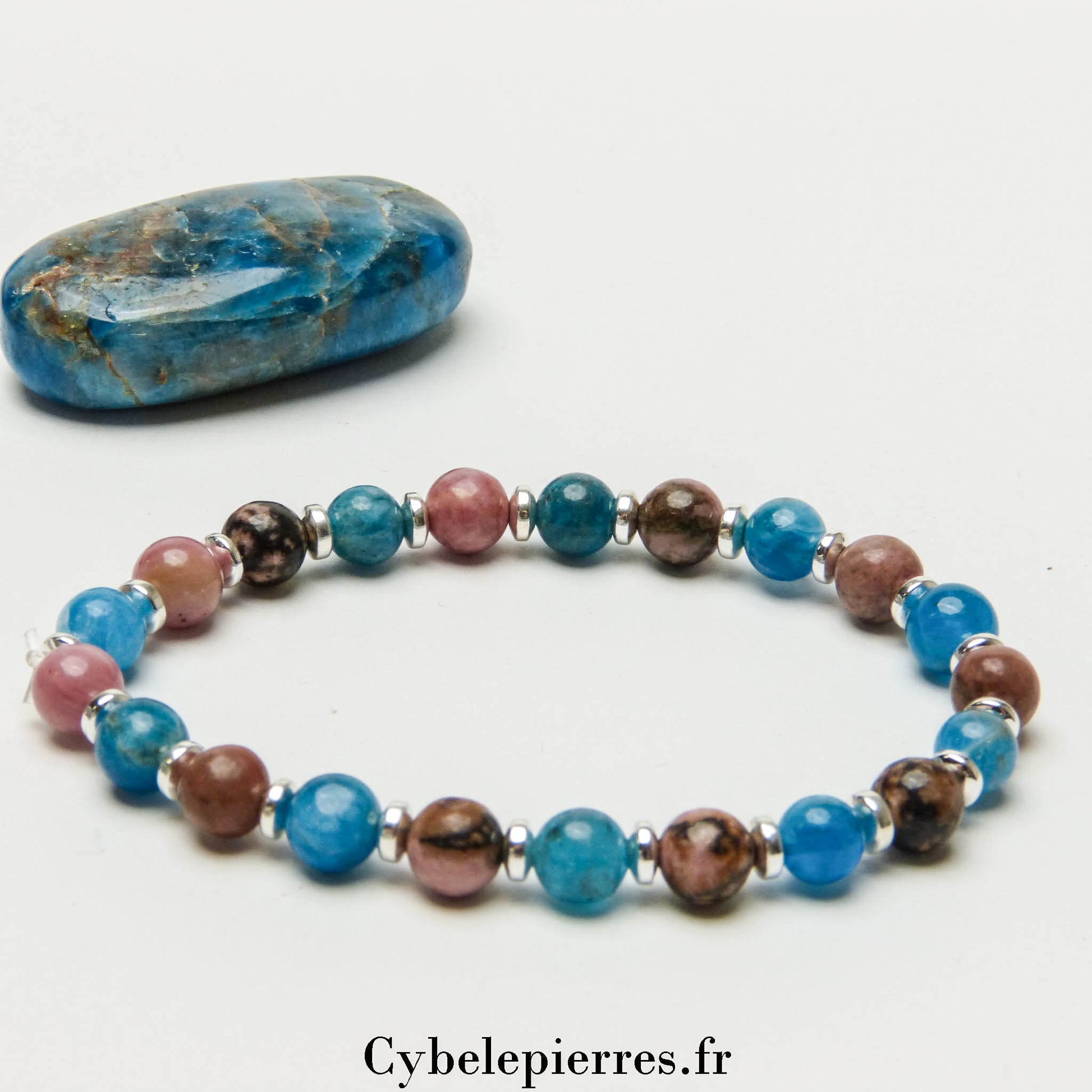 Bracelet Tendresse et Vérité – Apatite Bleue & Rhodonite (6 mm) - 18 cm | Clarté et Équilibre