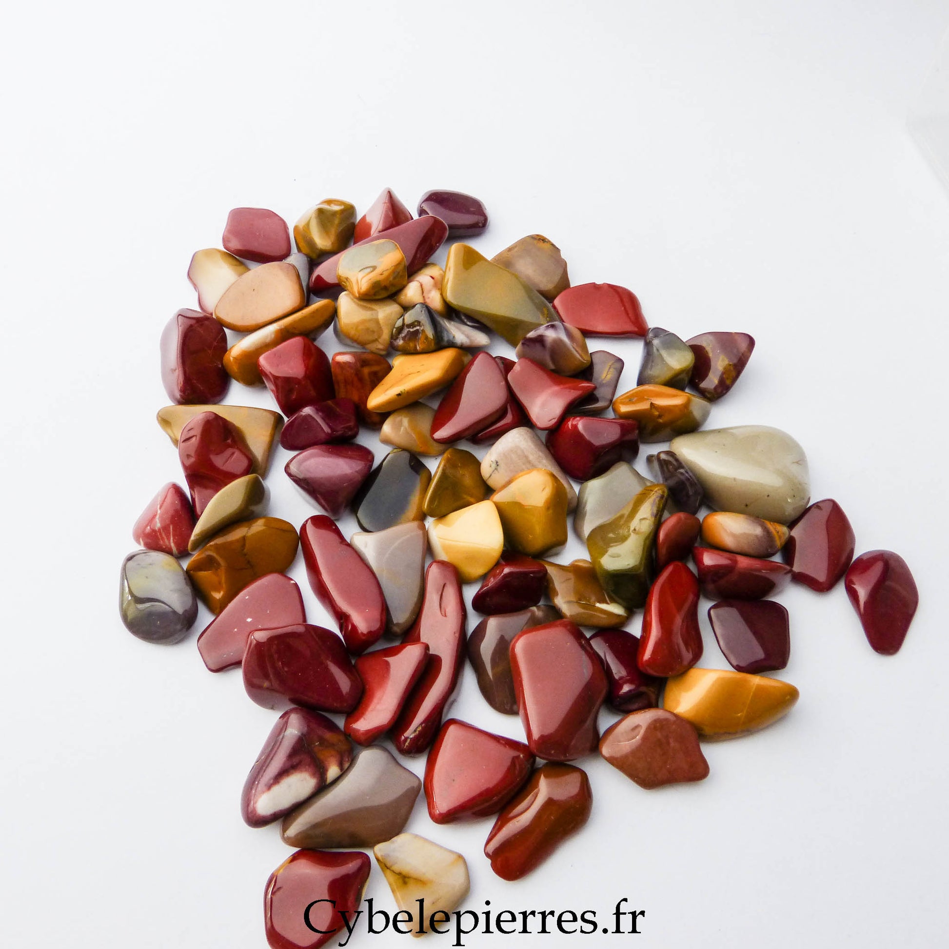 Chaque pierre roulée en jaspe mookaïte est soigneusement sélectionnée et vendue à l’unité. Elle mesure entre 2 et 3 cm, pour un poids compris entre 5 et 15 g.