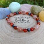 Bracelet Invincible - Hématite, Pierre de Soleil et Cornaline (6 et 8mm)- 18cm