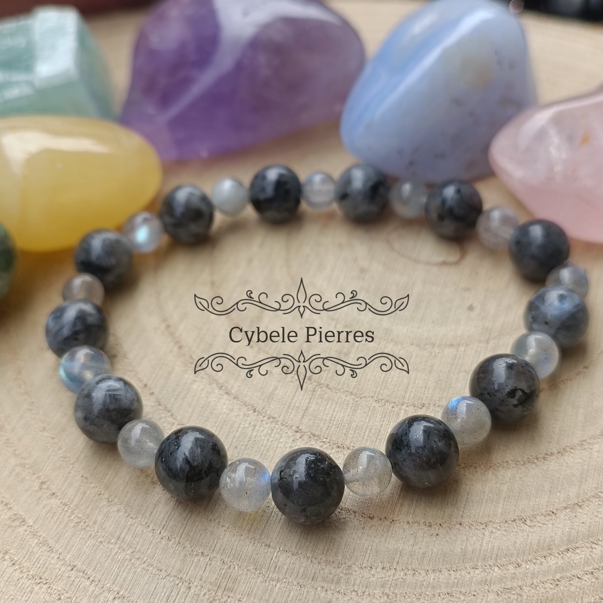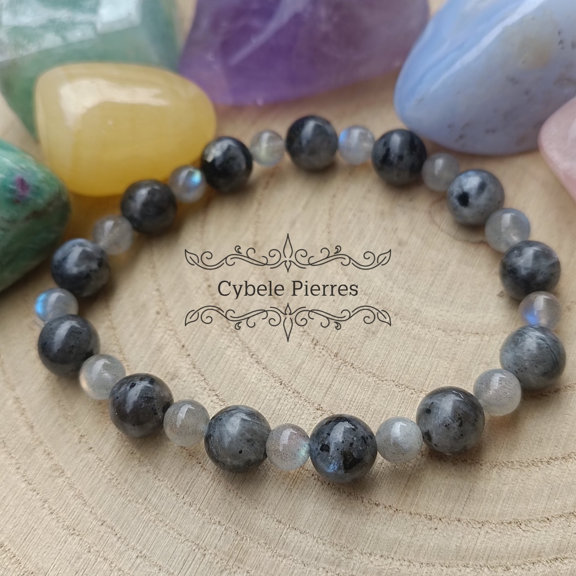 Bracelet Labradorite et Larvikite (8mm et 6mm)