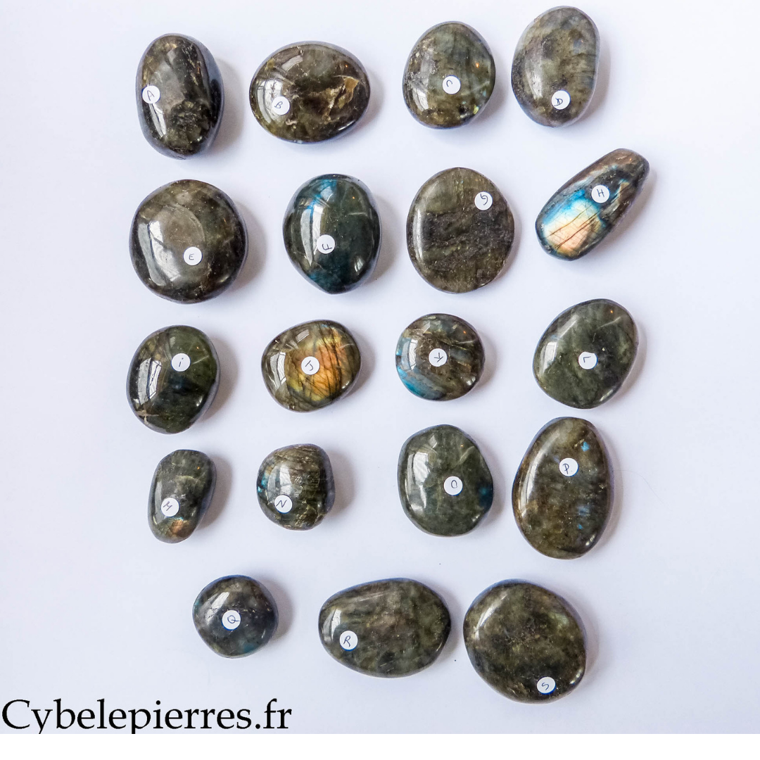 Chaque galet en labradorite est unique et disponible à l’unité, à choisir selon le poids et la photo.