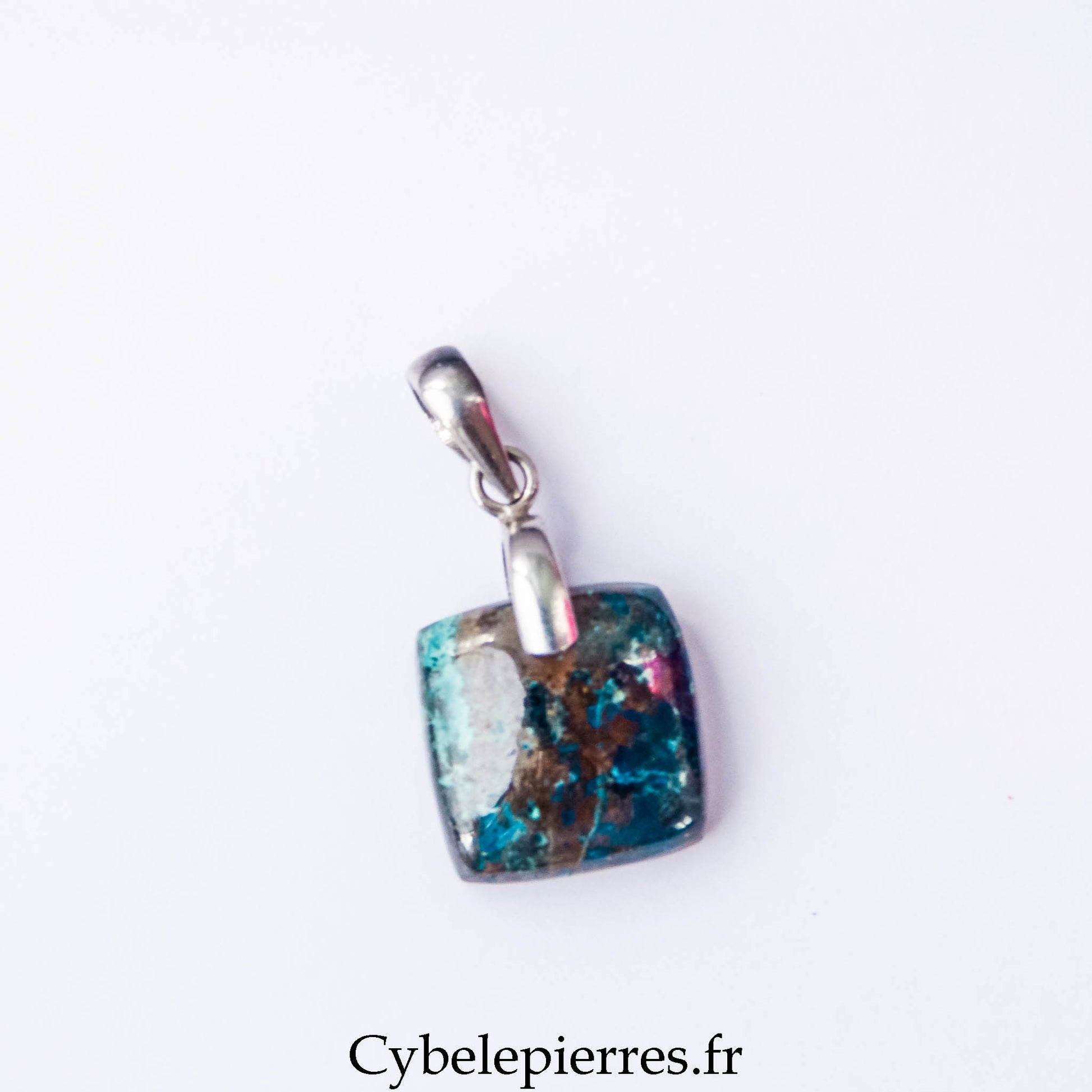 Pendentif Carré Chrysocolle – Apaisement et Créativité (Argent 0.925)