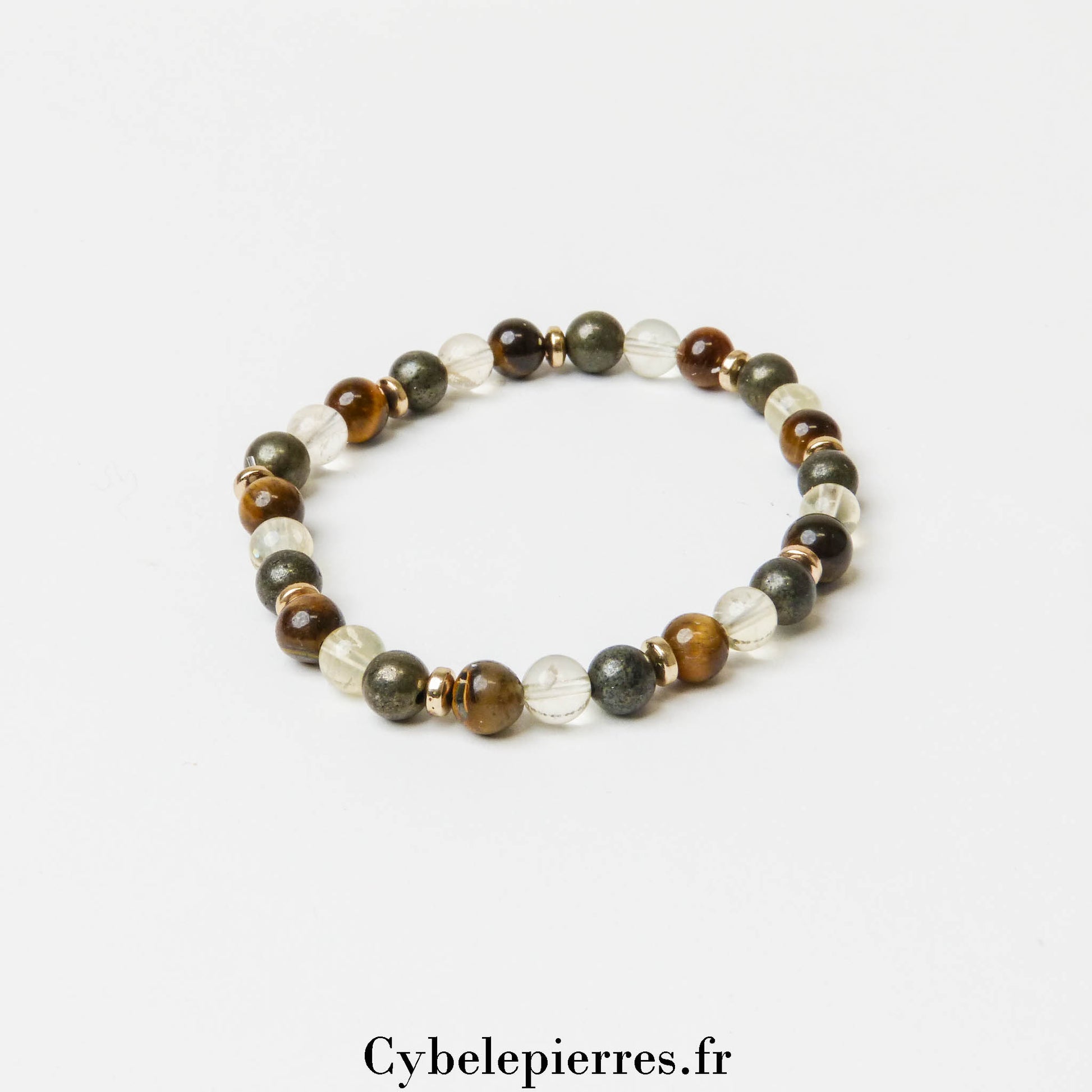 Ce bracelet en Œil de Tigre, Citrine et Pyrite est conçu pour attirer la chance, la prospérité et la motivation. Une combinaison idéale pour celles et ceux qui souhaitent avancer avec détermination et confiance tout en éloignant les énergies négatives.