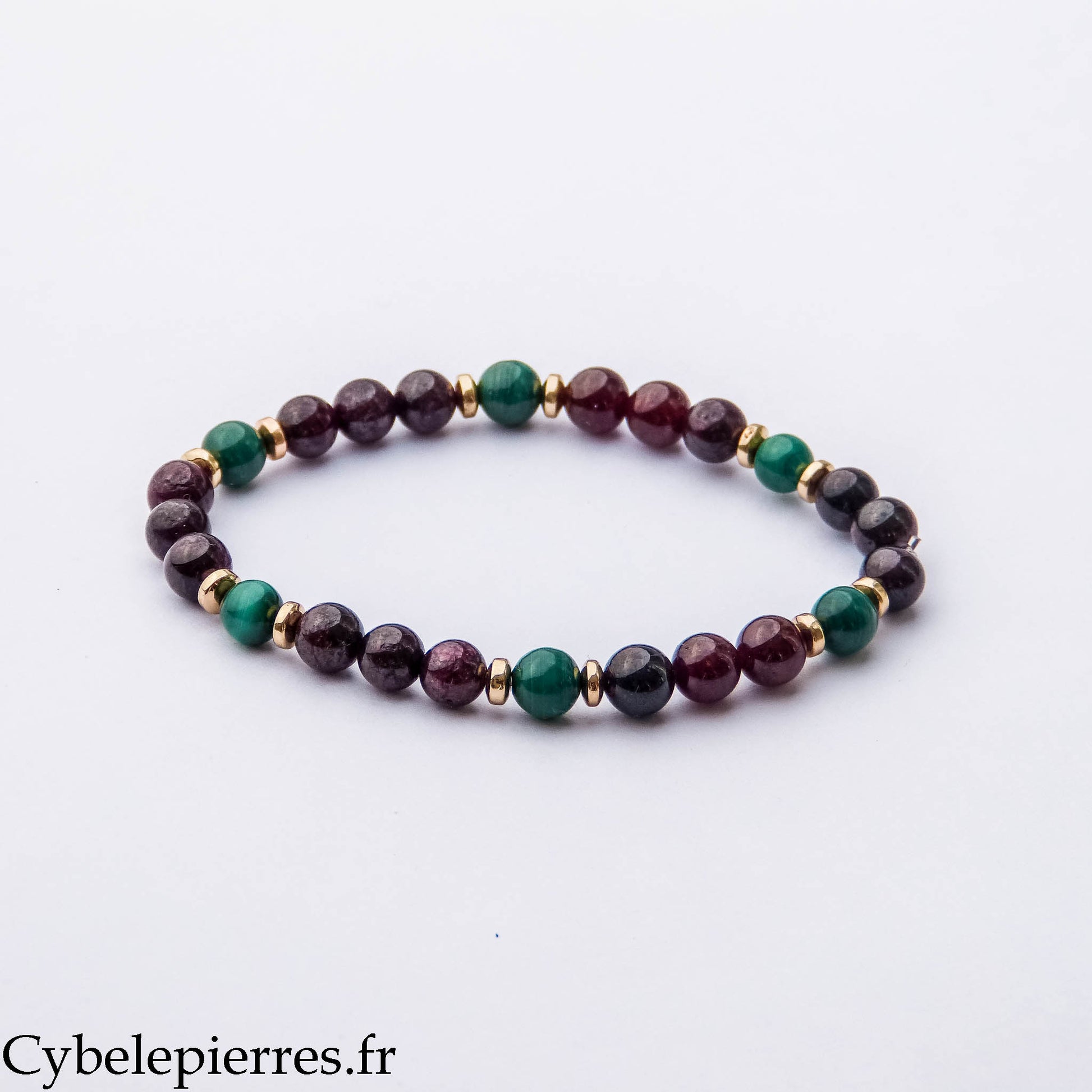 Bracelet Créativité – Grenat & Malachite (6 mm) - 18 cm | Courage, Équilibre et Créativité