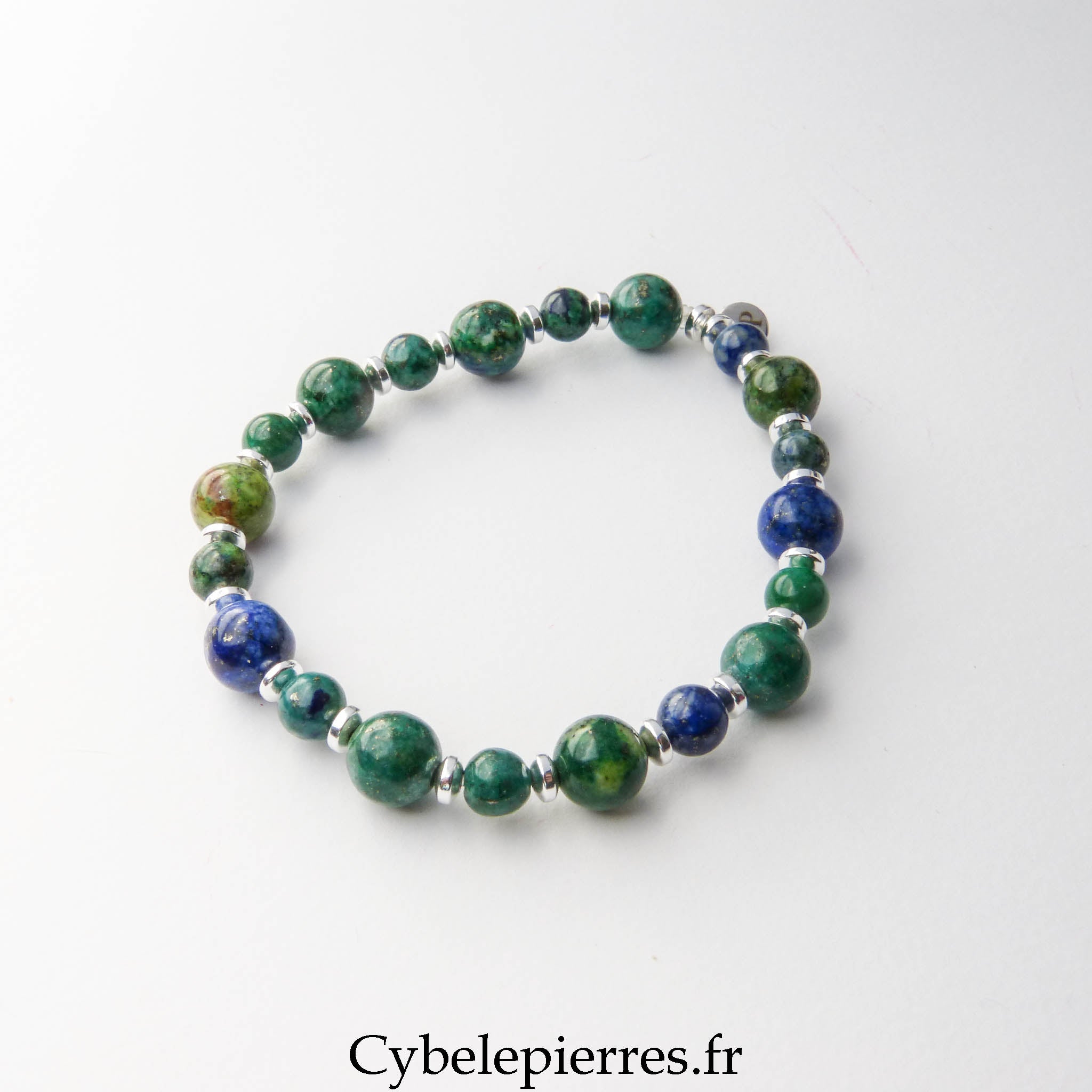 Découvrez l’alliance puissante de l’Azurite et de la Malachite avec ce bracelet unique. Une combinaison précieuse pour soutenir les périodes de changement et renforcer la confiance en soi.