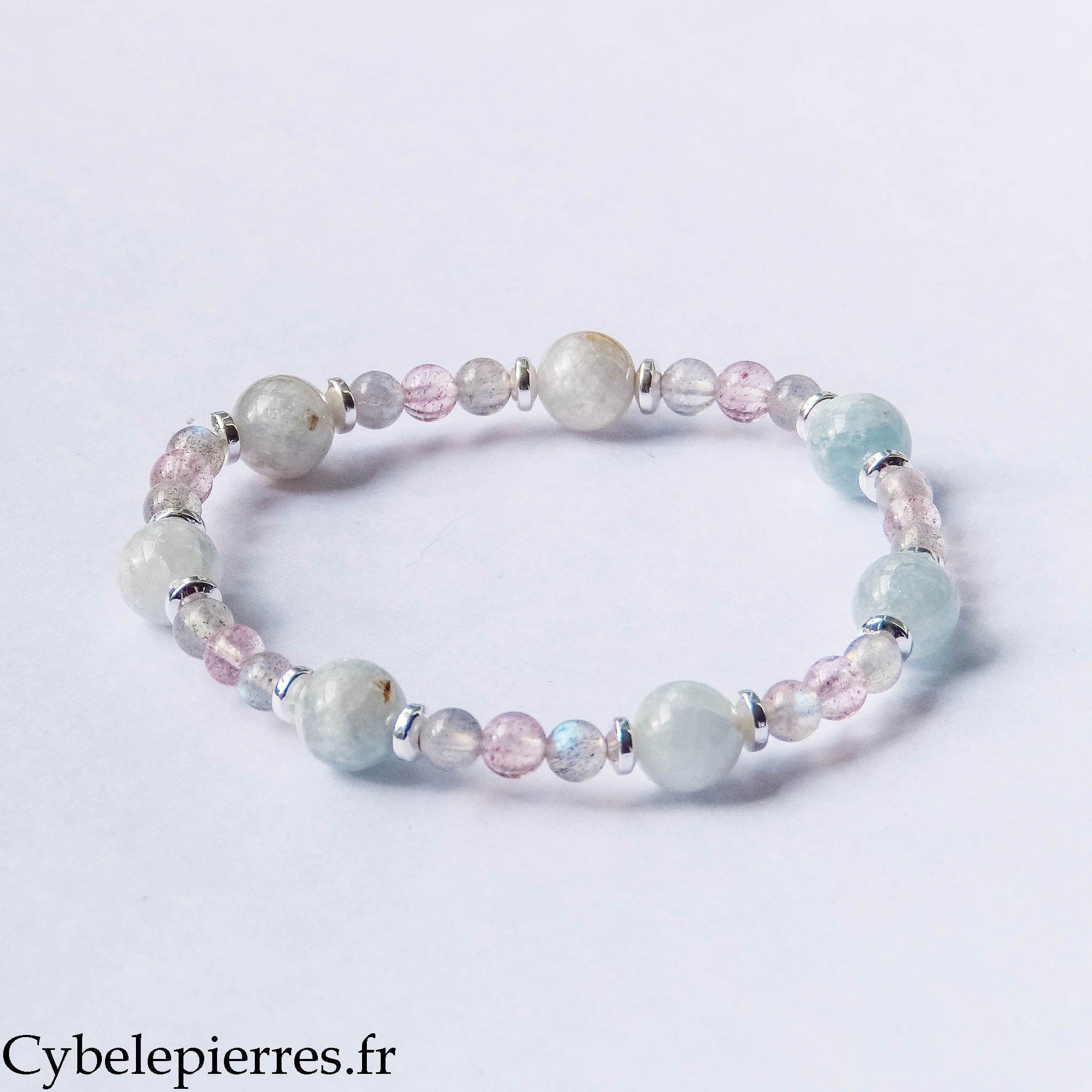 Bracelet Douces Paroles – Célestine, Labradorite et Aventurine rouge (8 mm et 4 mm) – 18 cm | Communication et Protection