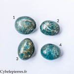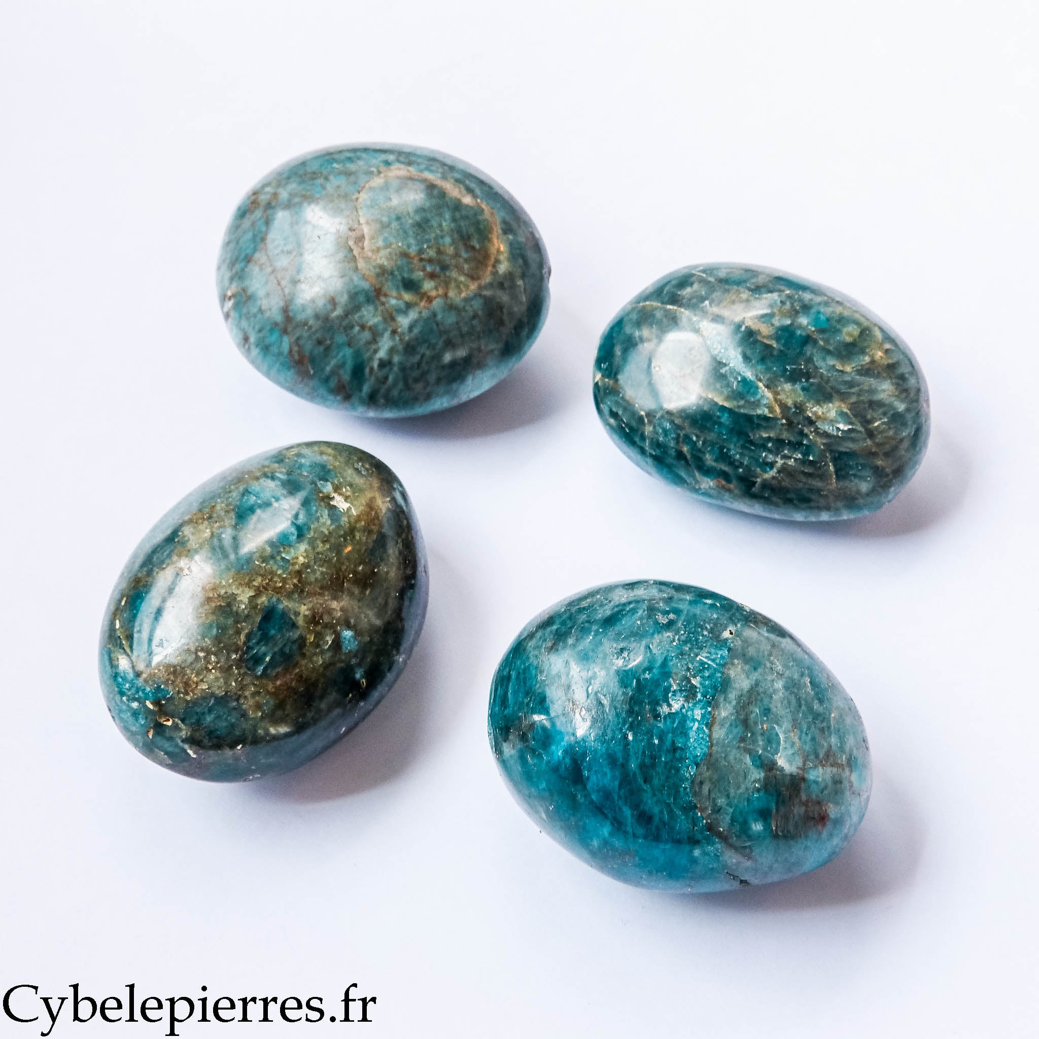 Chaque galet en apatite bleue est unique et disponible à l’unité, à choisir selon le poids et la photo.