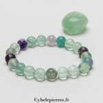 Chaque bracelet est unique avec une variation naturelle des couleurs de la fluorite, allant du violet profond au vert et bleu doux.