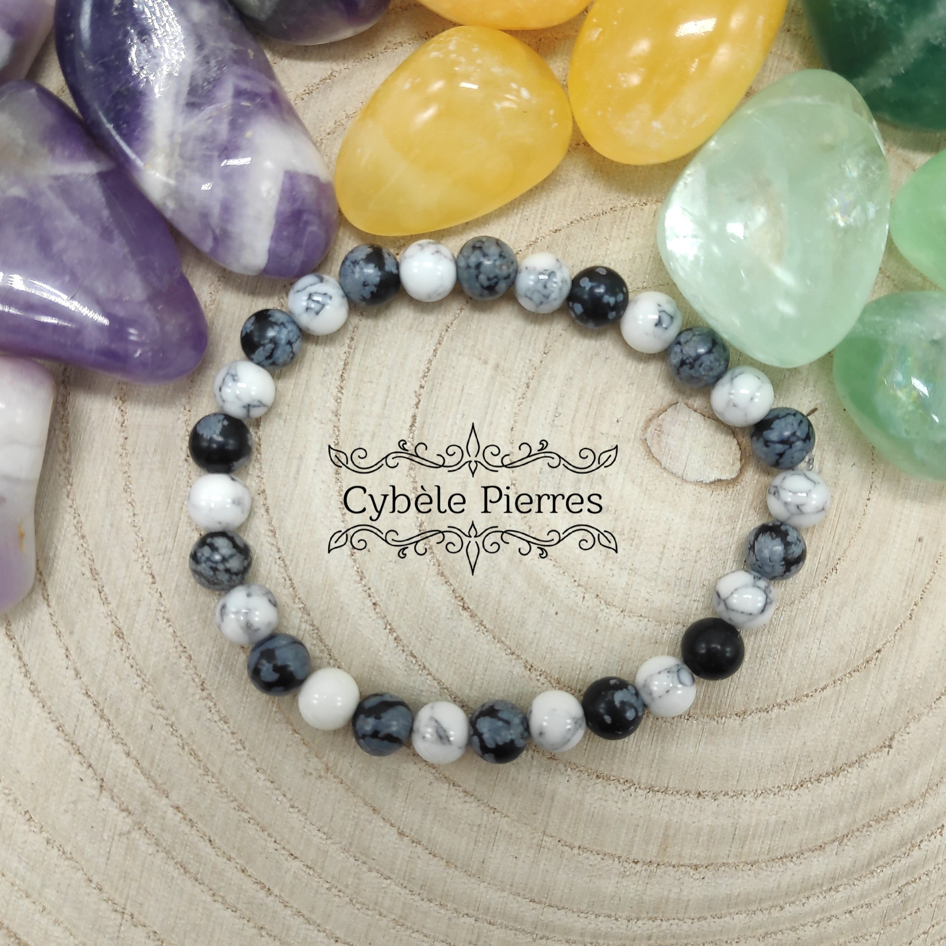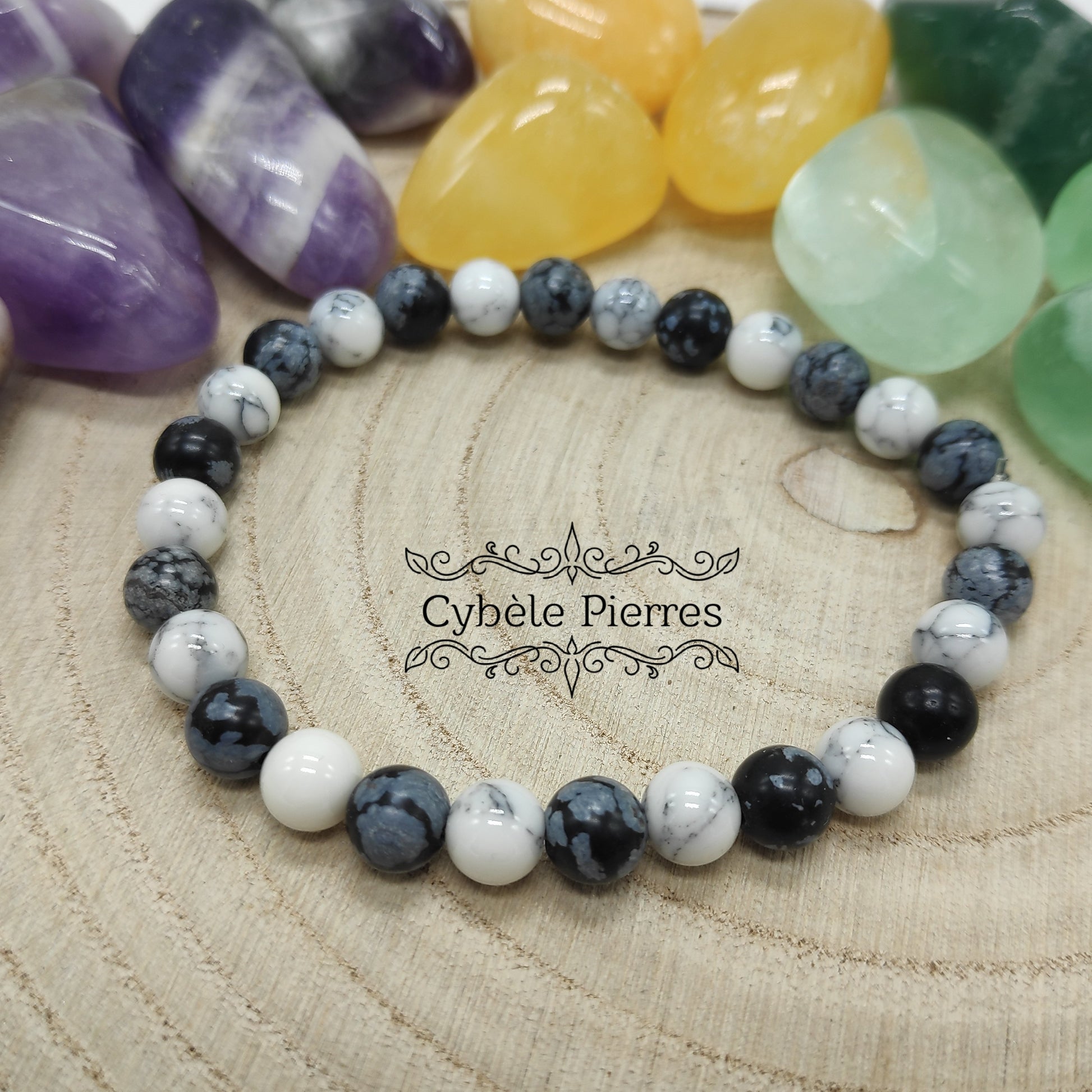 Bracelet Accomplissement - Howlite et Obsidienne flocons de neige (6mm)