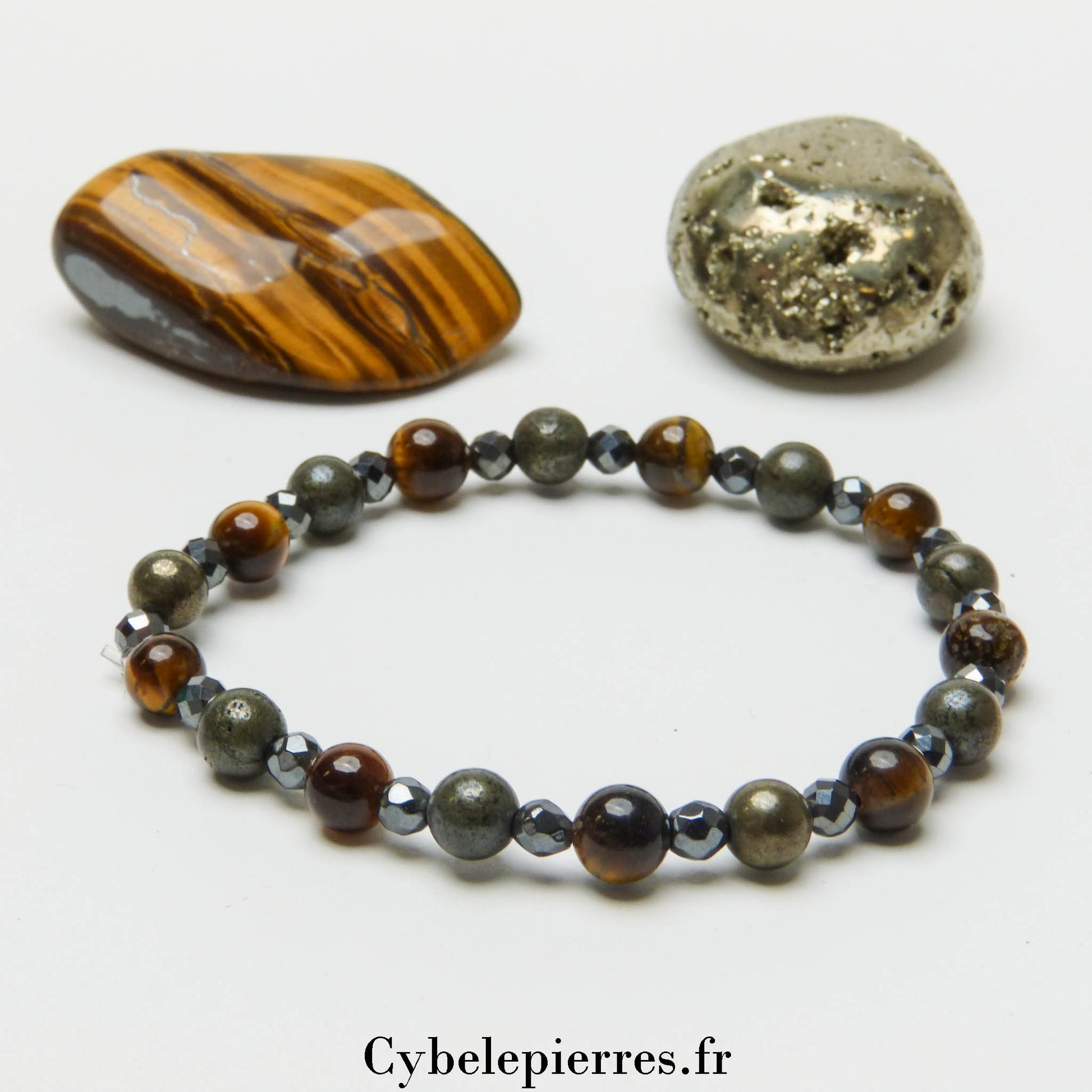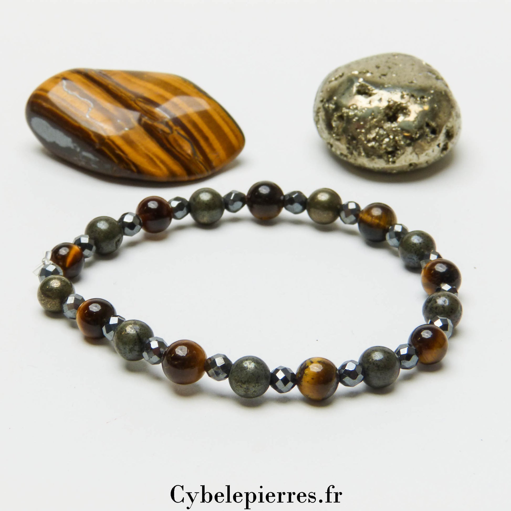 Le Bracelet Chance et Prospérité associe la Pyrite et l'Œil de Tigre en perles de 6mm, deux pierres puissantes pour favoriser la chance, la prospérité, et la protection.